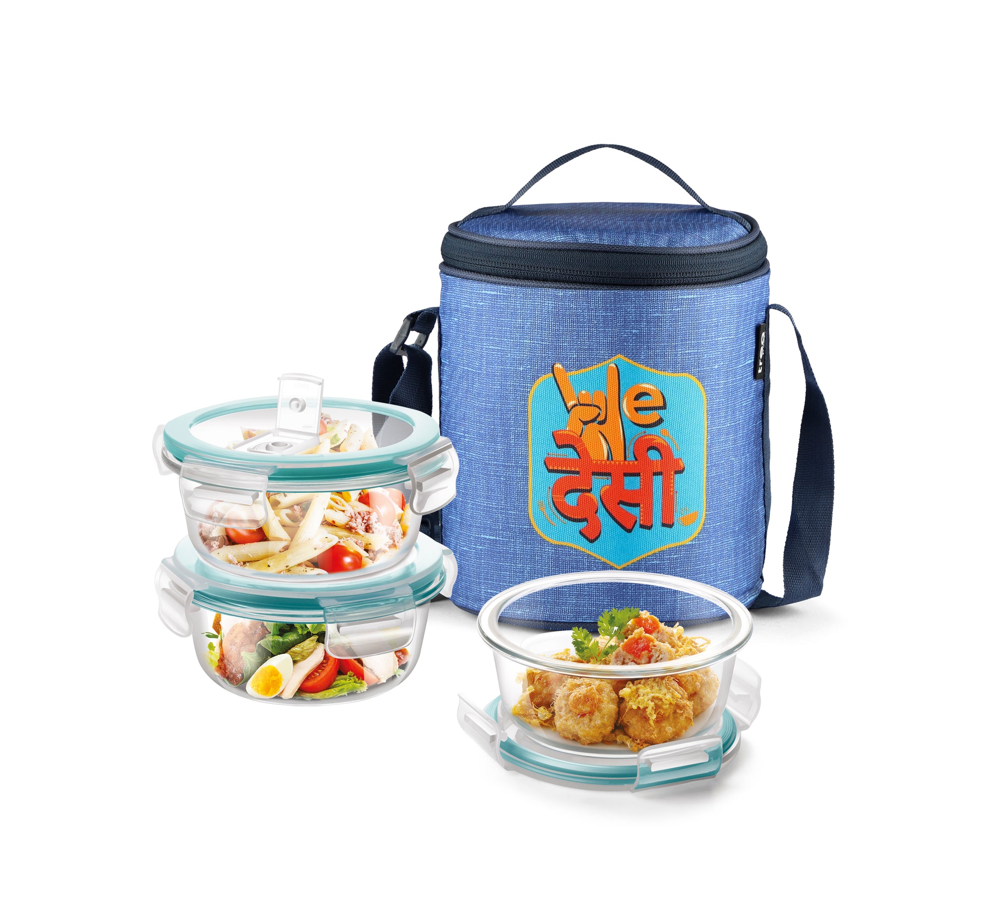 "We Desi" - Glass Tiffin with Printed Jacket (Milton)