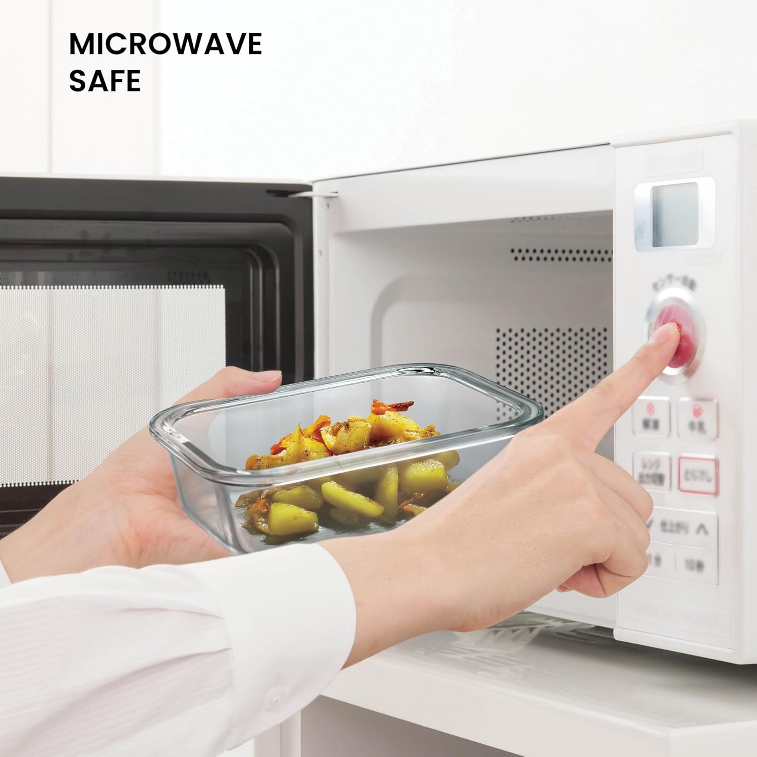 High borosilicate glass containers. Equipped with a steam-release vent. Leakproof & airtight lids, ensure spill-free storage and freshness. Withstands extreme temperatures from -40°C to 400°C. Comes with a modern, zippered carry bag for portability. Safe for use in both microwave and oven. Ideal for packing and enjoying homemade meals at work or on the go.