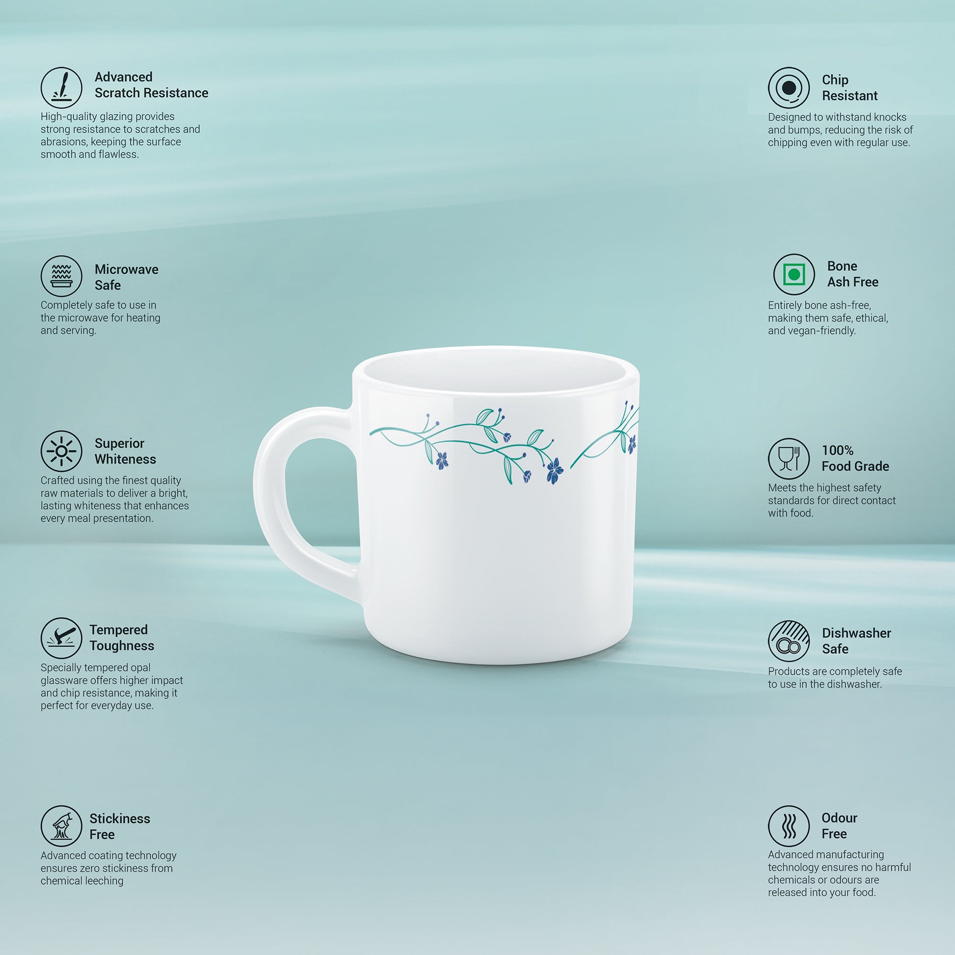 Tempered Toughness : Specially tempered Opal glassware offers higher impact and chip resistance, making it perfect for everyday use.