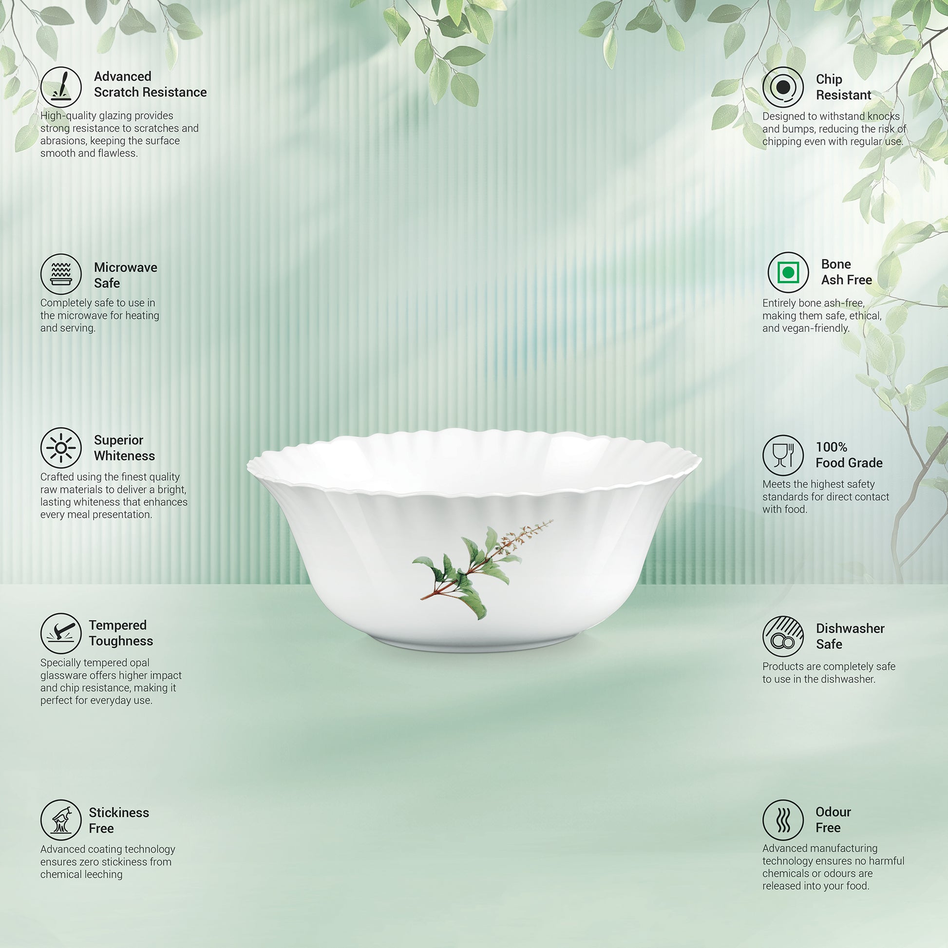 Tempered Toughness : Specially tempered Opal glassware offers higher impact and chip resistance, making it perfect for everyday use.