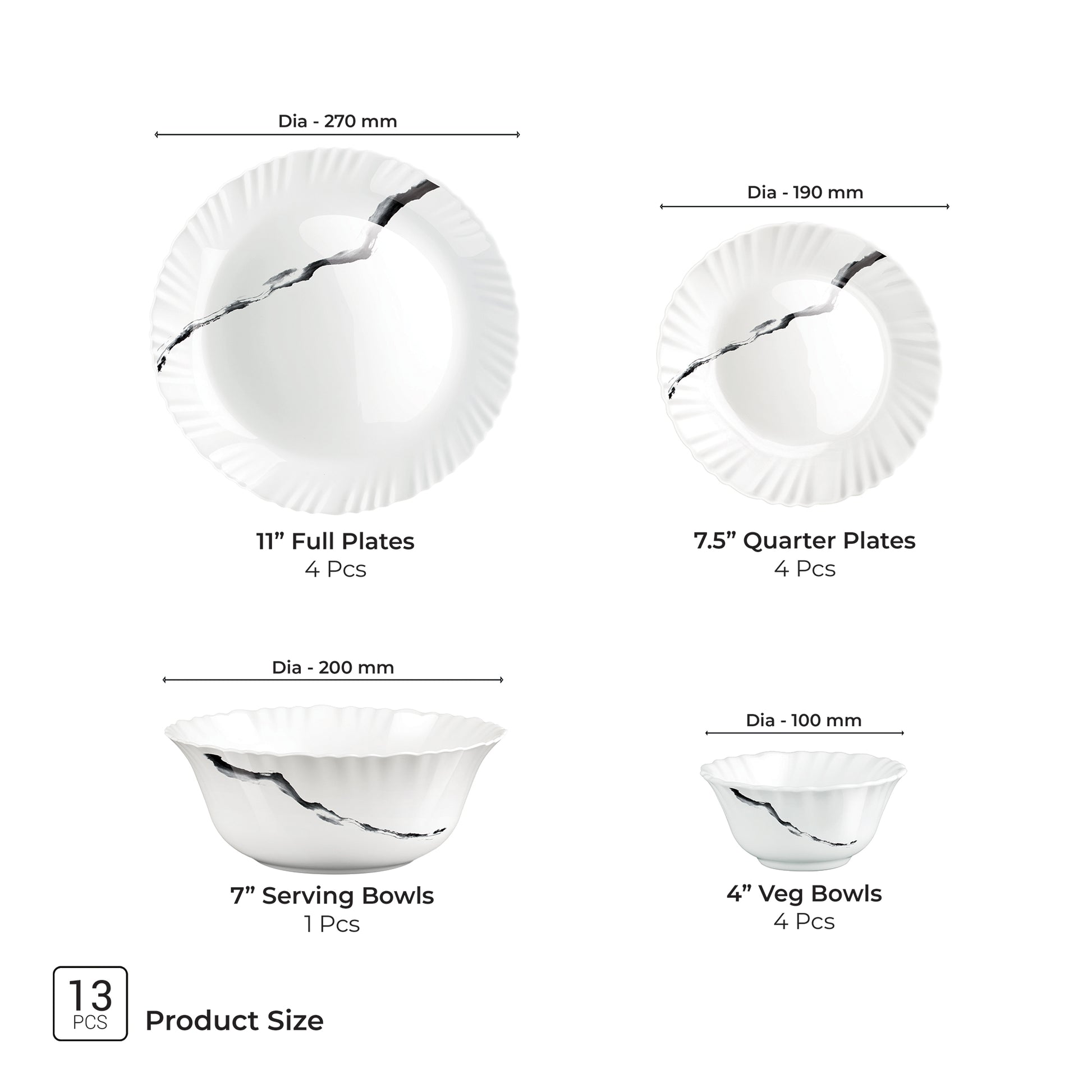 13 Pcs Set - 4 x 11" Full Plate, 4 x 7.5" Quarter Plate, 4 x Veg Bowl, 1 x Serving Bowl