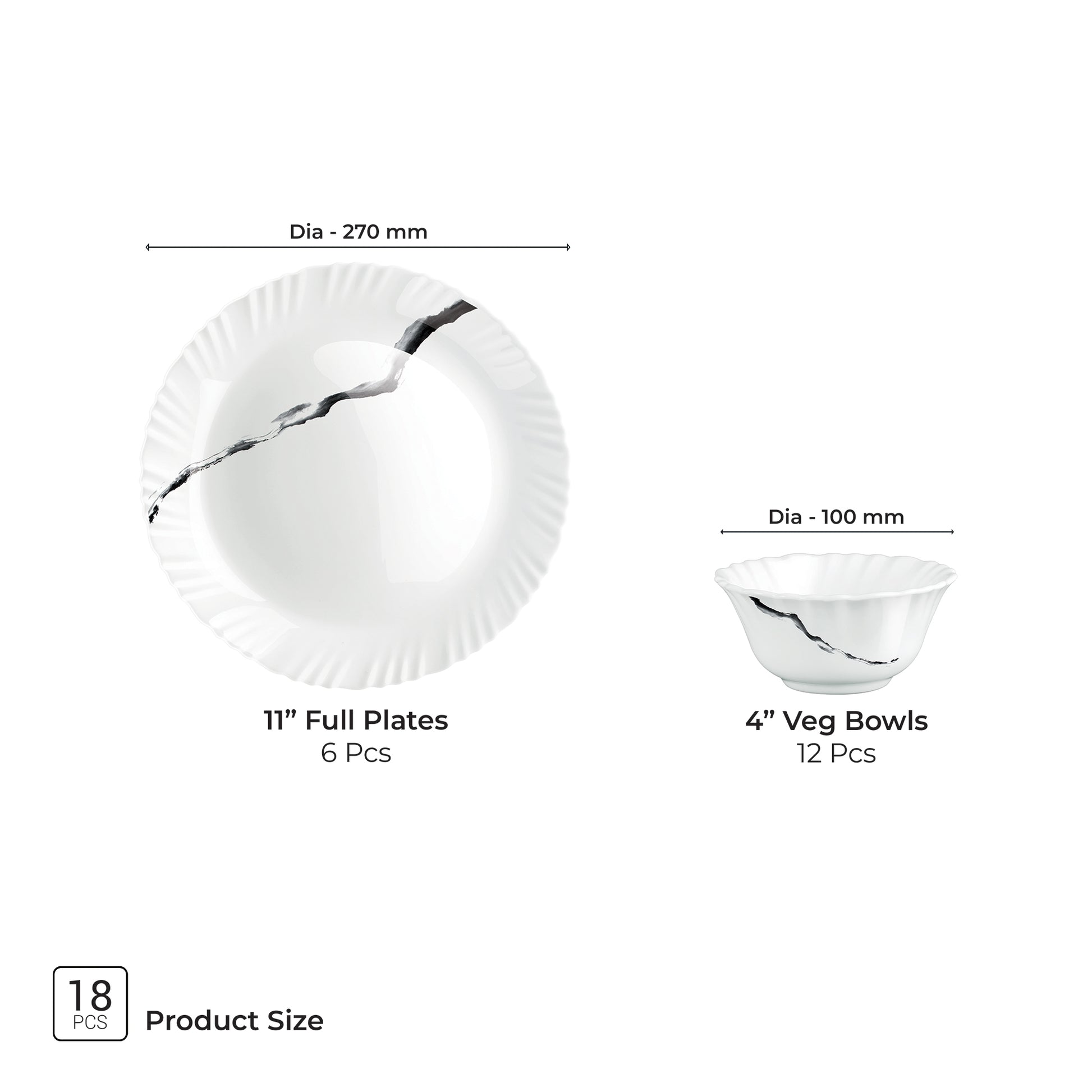 18 Pcs Set (Q) - 6 x 11" Full Plate, 6 x 7.5" Quarter Plate, 6 x 4" Veg Bowl