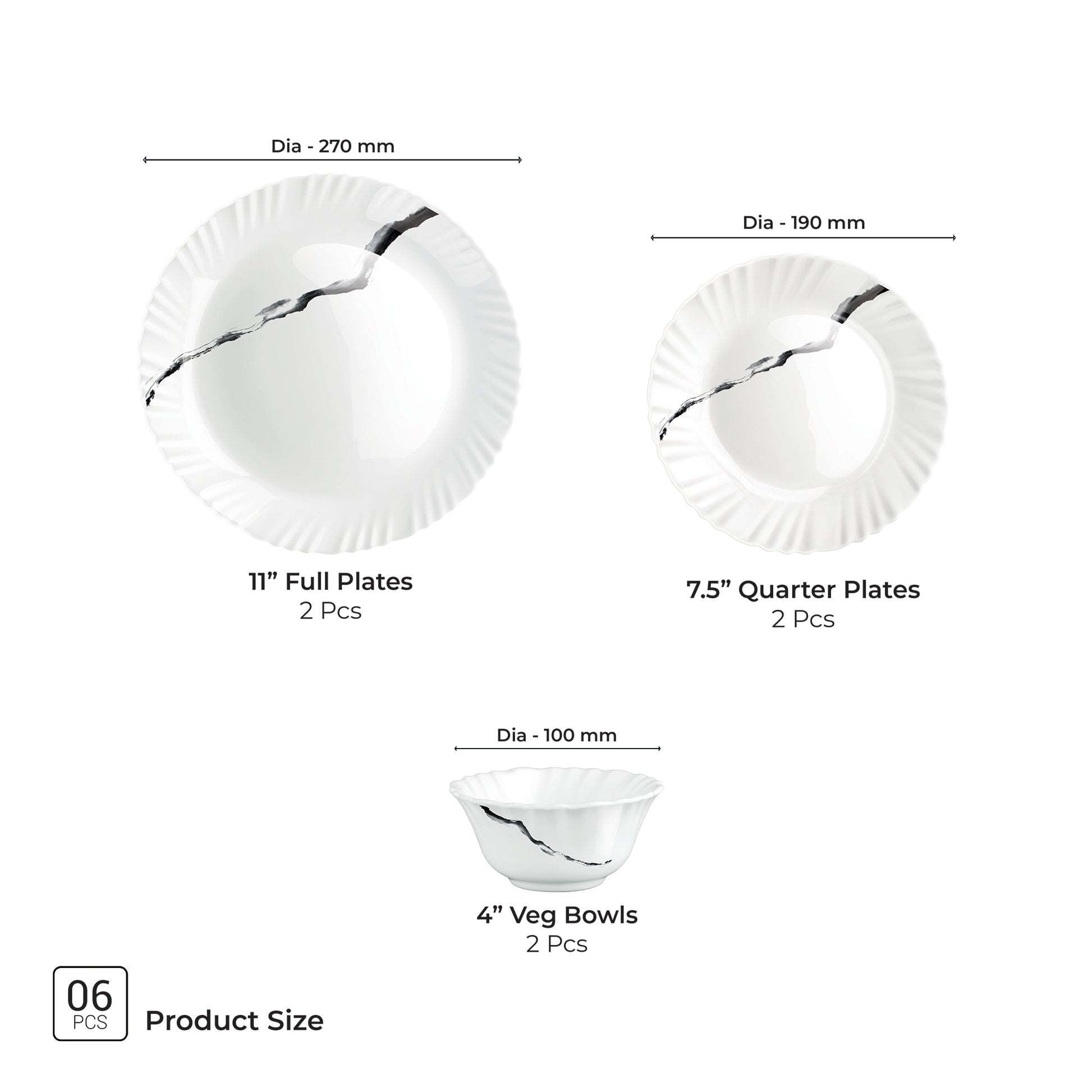 6 Pcs Set - 2 x 11" Full Plate, 2 x 7.5" Quarter Plate, 2 X Veg Bowl