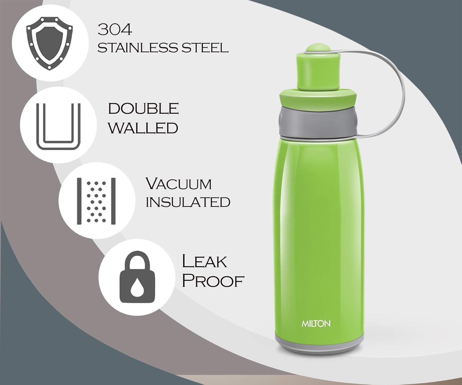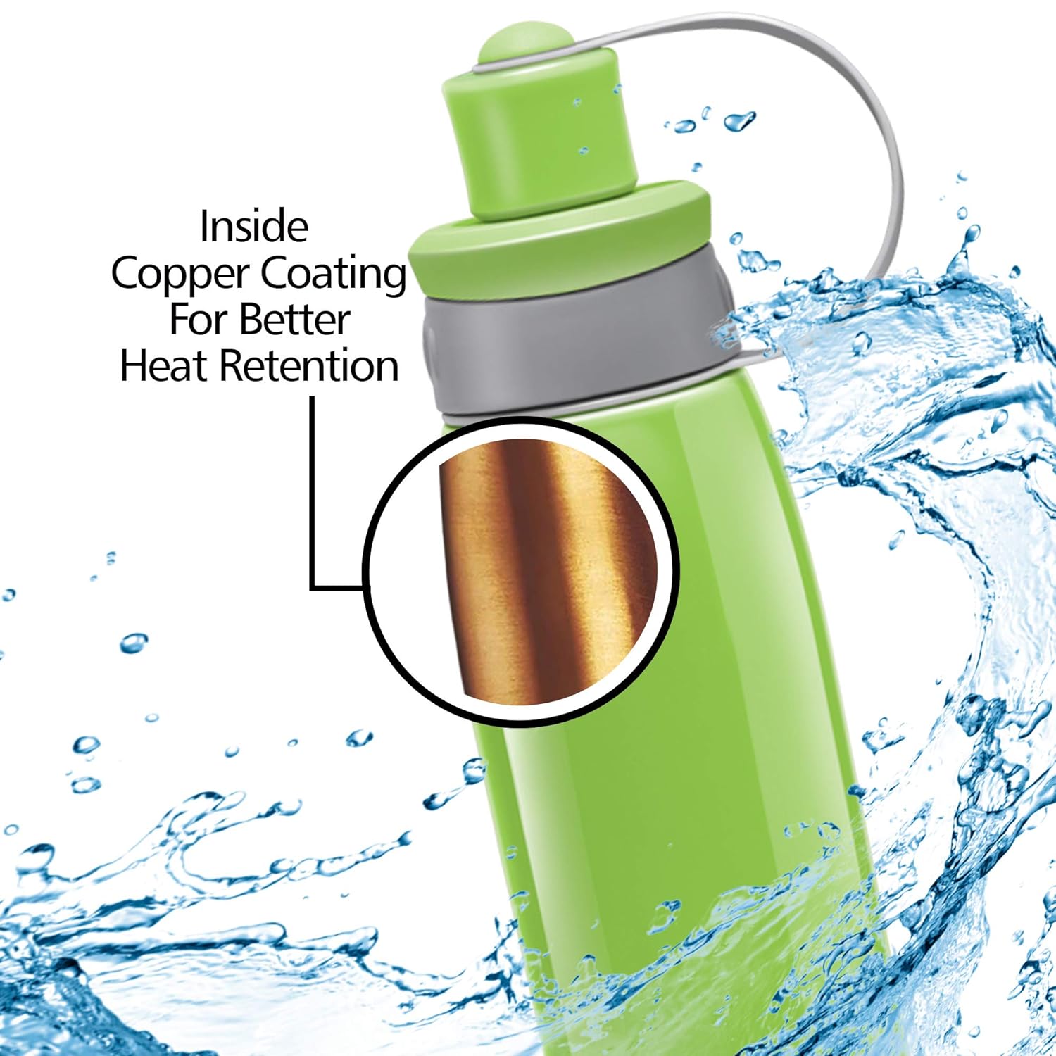 Colour: Green; Material: Stainless Steel; Package Content: 1 - Piece Bravo 400 Sports Water Bottle; Dimension in cm (L x W x H): 6.8 x 6.8 x 6.8