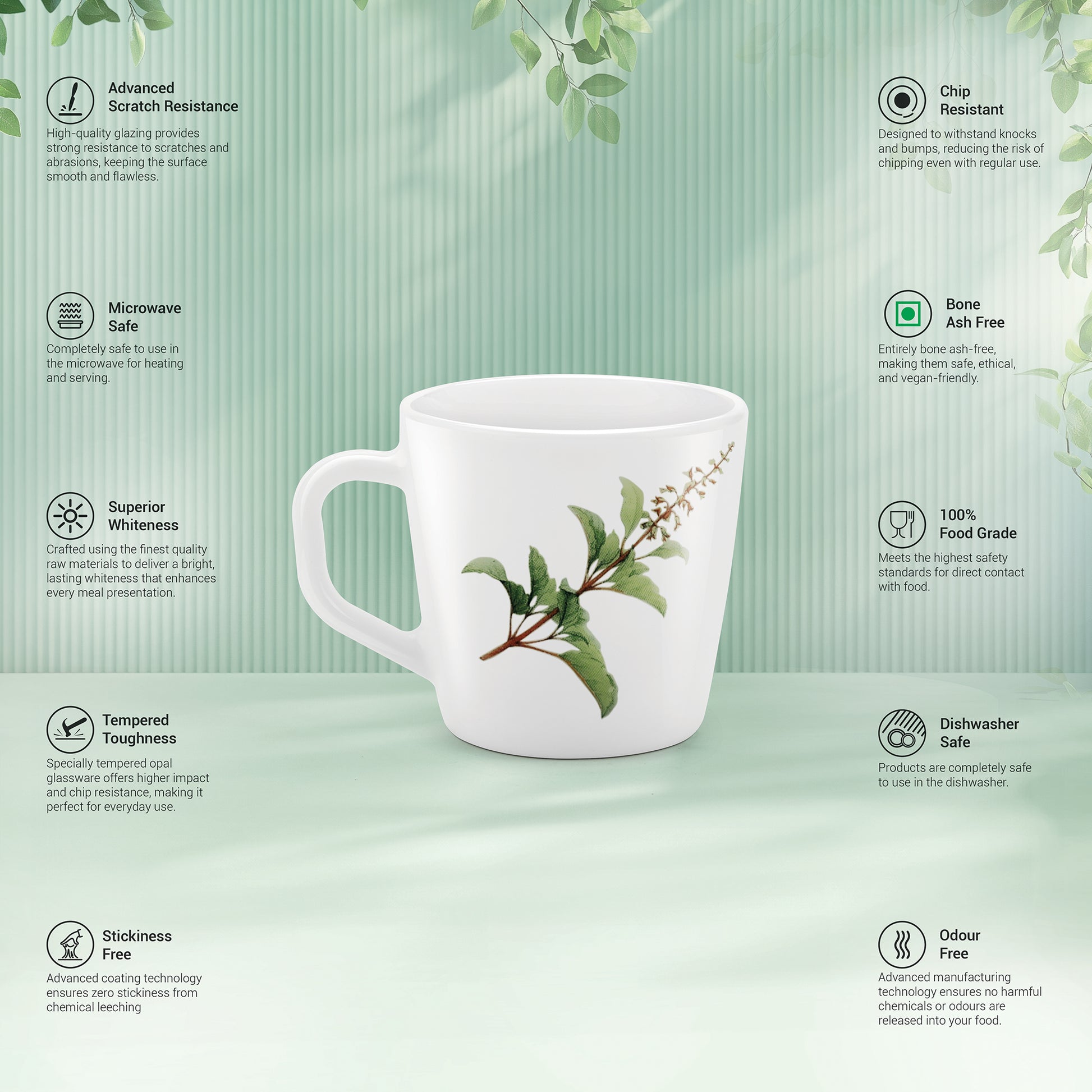 Tempered Toughness : Specially tempered Opal glassware offers higher impact and chip resistance, making it perfect for everyday use.