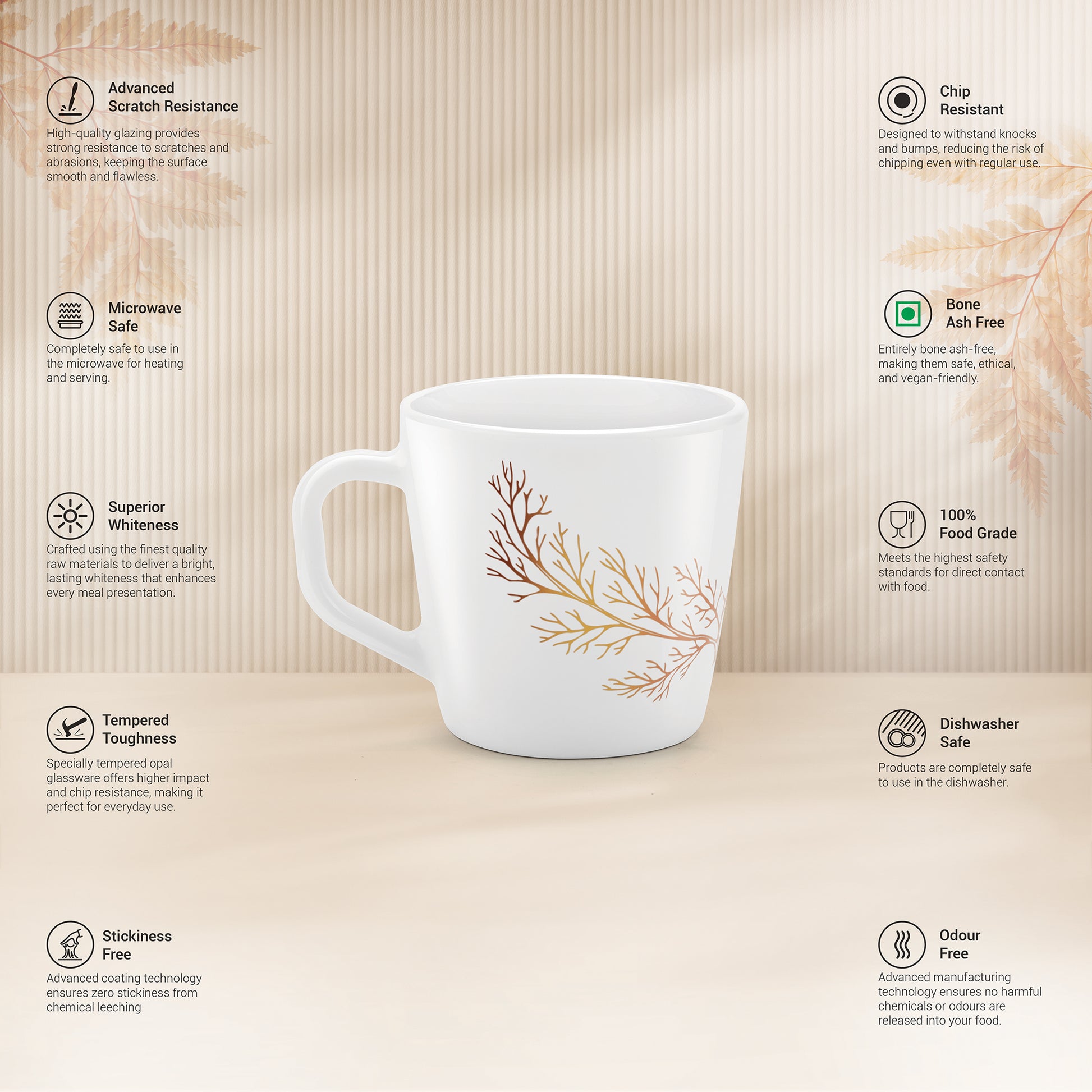 Tempered Toughness : Specially tempered Opal glassware offers higher impact and chip resistance, making it perfect for everyday use.