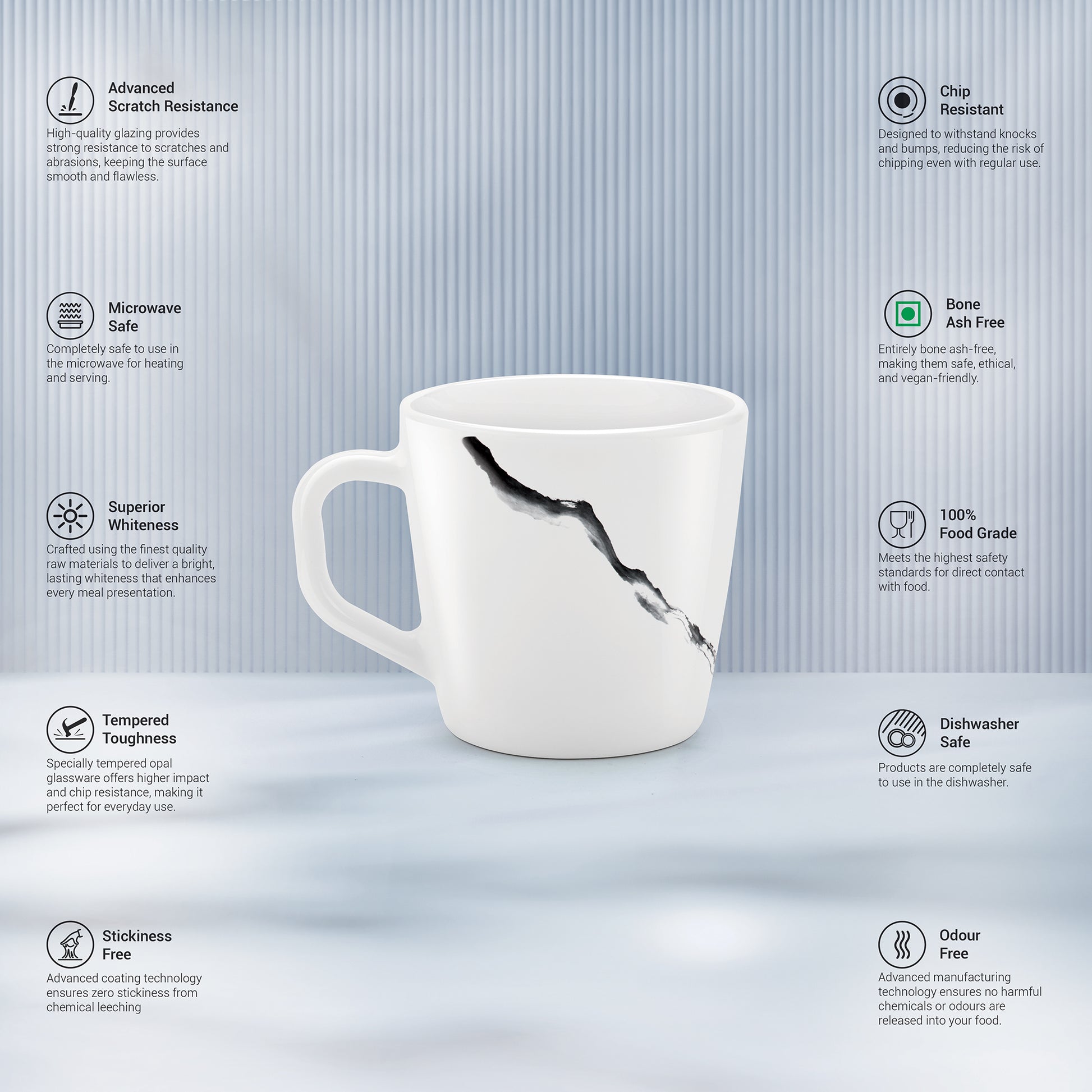 Tempered Toughness : Specially tempered Opal glassware offers higher impact and chip resistance, making it perfect for everyday use.