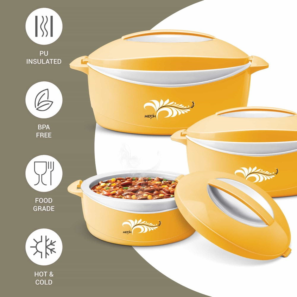 - Delight casseroles by Milton have a double-walled design with a stainless-steel interior and plastic outer body.