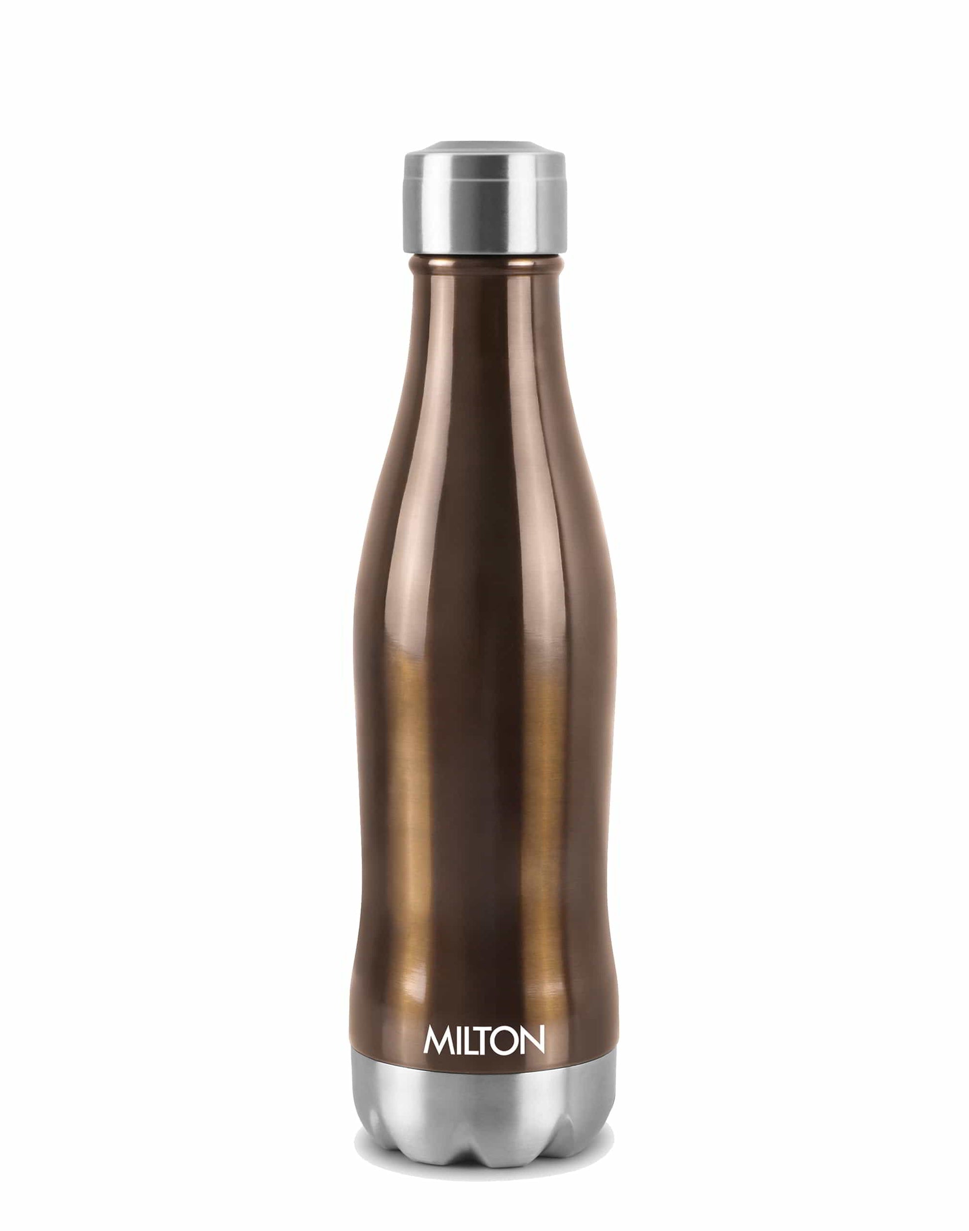 The Milton Double walled vacuum insulated stainless steel water bottle keeps beverages hot or cold for 24 hours. It is made from high-quality, food-grade stainless steel and is easy to carry and durable. The bottle is covered by a 1-year warranty and has a leak-proof design. It has an inner copper coating for better heat retention and vacuum insulated technology to keep beverages hot or cold for long hours. The bottle is made from 304 Grade stainless steel, is lead-free, durable, unbreakable, and rust-proof, making it suitable for various occasions and activities.