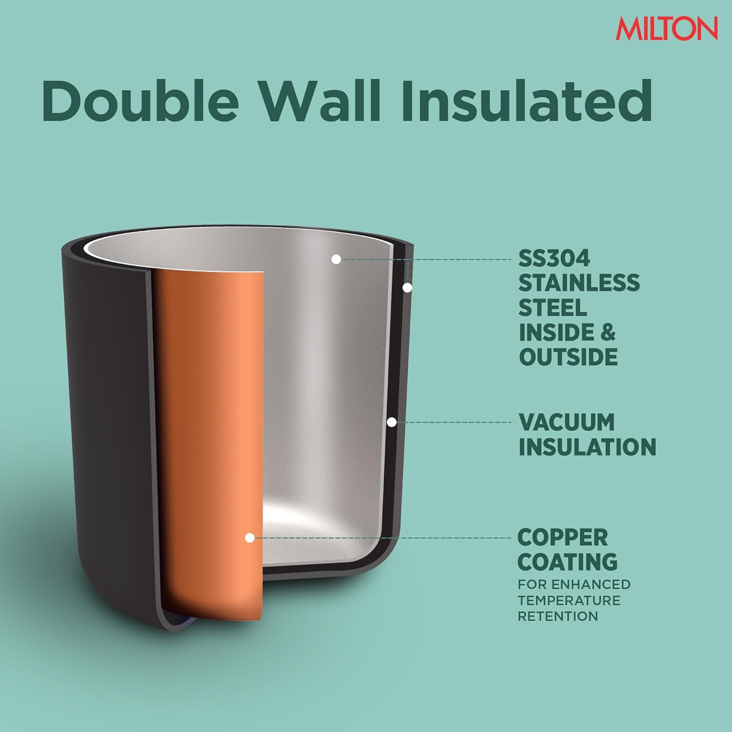 Double walled Vacuum insulated technology keeps beverages hot or cold for 24 hours, Inner copper coating for better temperature retention. A unique bottle that makes pouring completely hassle-free and spill-free.