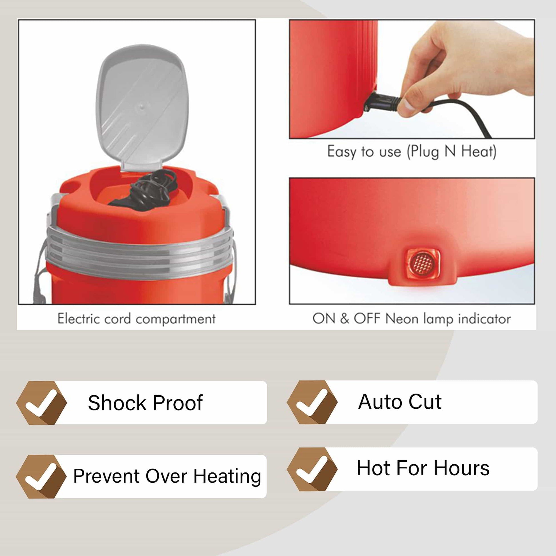 Electric heated lunch boxes are a cost-effective and convenient option for bringing hot meals to work or other activities. They save time and come with a one-year warranty. These lunch boxes can be easily plugged into a wall outlet or car adapter and heat lunch to a comfortable eating temperature in 30 minutes. They are also useful for family trips, camping trips, long drives, and business trips where finding a meal may be difficult. The lunch boxes have features such as a PU insulated lid, snap clams for better locking, and a detachable power cord for easy storage. They operate on normal 230V domestic A. C supply and consume very little power.