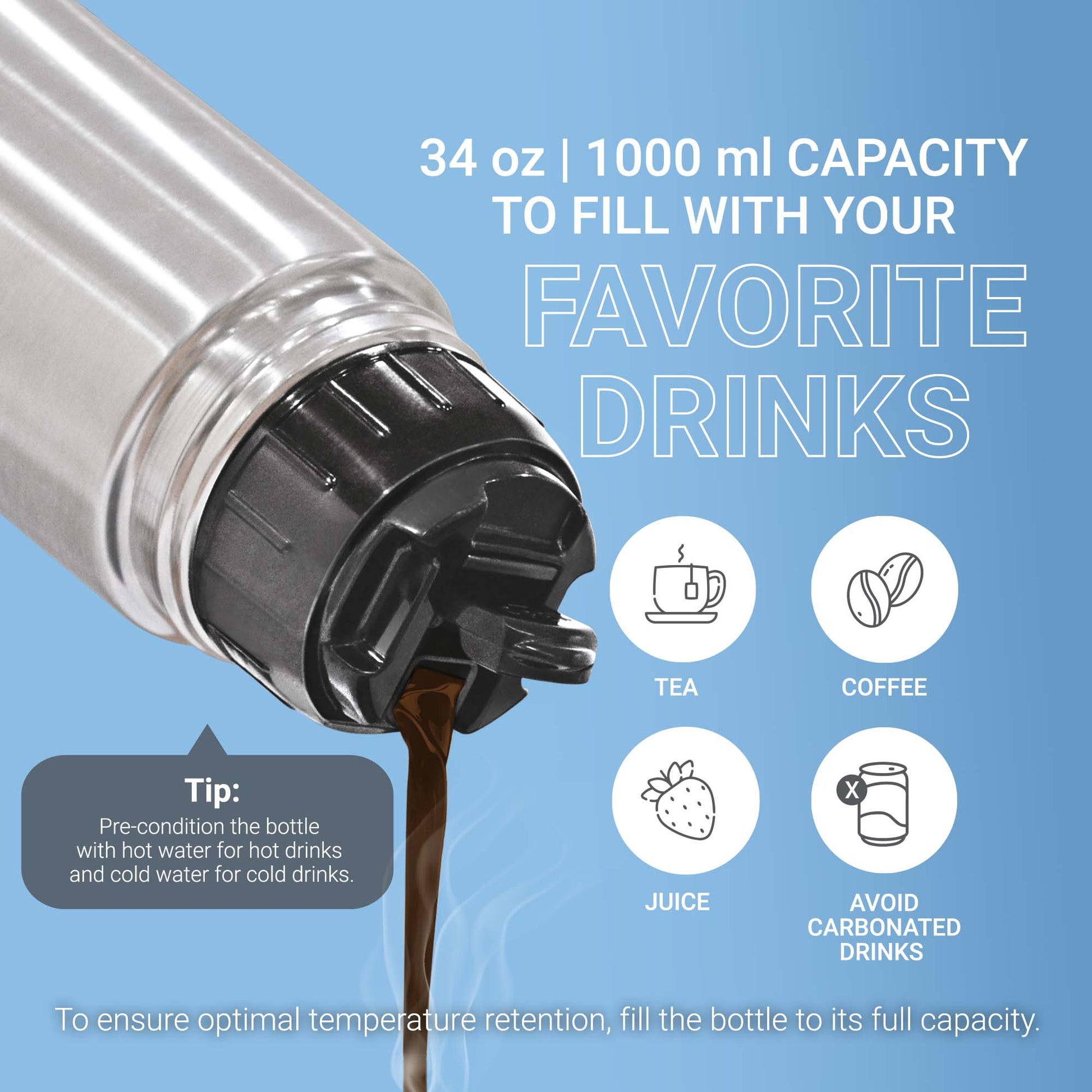 - Maintains temperature for hours