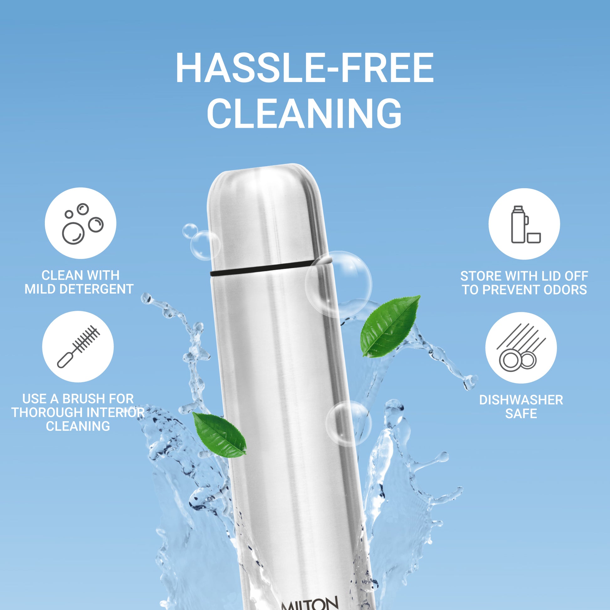 Milton Water Bottle 1 litre has Double walled Vacuum Insulated technology that keeps beverages Hot or Cold for 24 hours. Inner Outer high-quality SS304 stainless steel with copper coating for better temperature retention. Our steel water bottle 1 ltr has leak proof design that keeps your bag dry, whether you're on the move. Tested for durability and corrosion resistance to guarantee the highest quality with 1 year warranty.