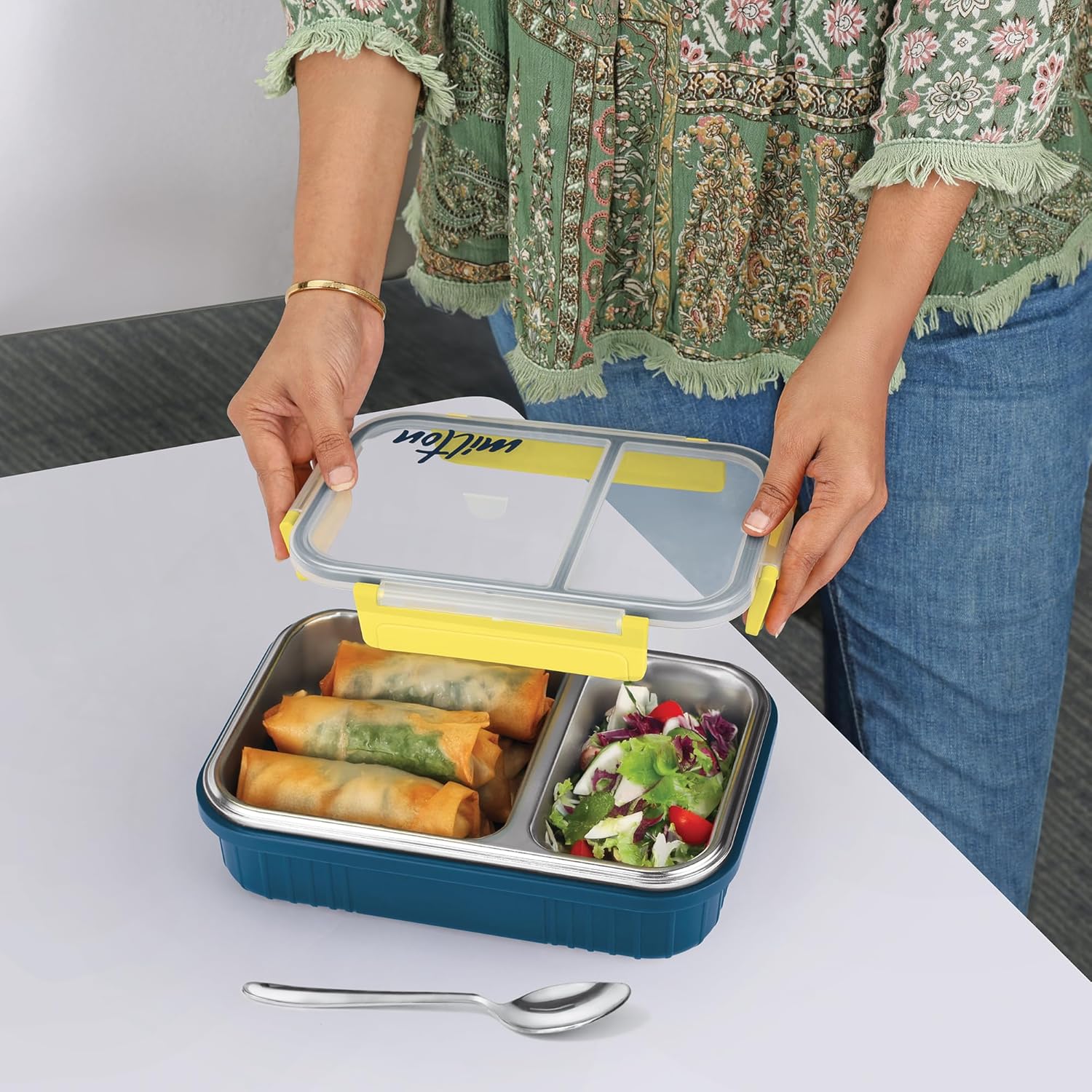 The Fun feast tiffin is a game-changer for food enthusiasts. Featuring inner steel fixed compartments, it ensures that your dishes remain separate and flavors intact. Plus, the included steel spoon adds a touch of elegance. Available in both two and three compartments, the Fun feast tiffin is your go-to mealtime partner!