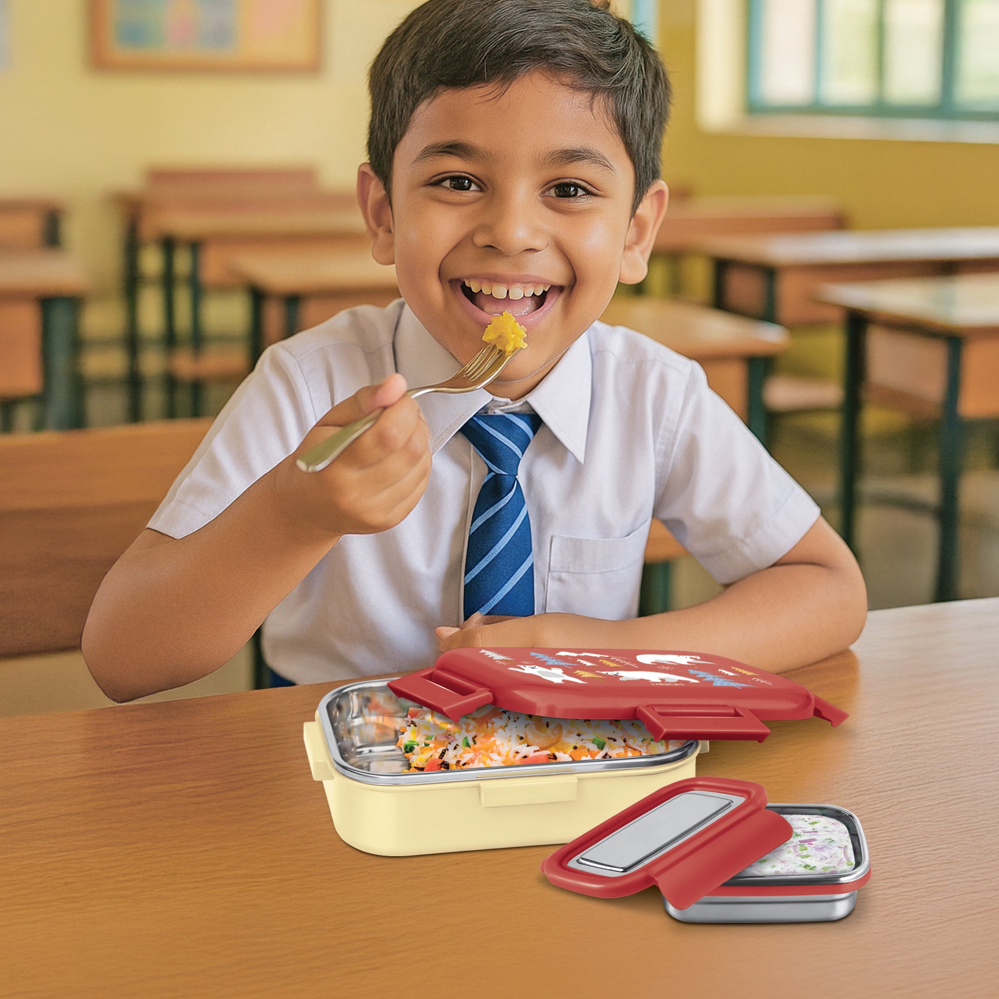 Keeps food warm for extended periods, ensuring fresh and tasty meals. Provides a secure seal to lock in heat and prevent leaks. Features attractive and fun designs that appeal to children. Includes an airtight stainless steel container and a spoon for added convenience. A perfect lunch solution that is reliable, practical, and fun.