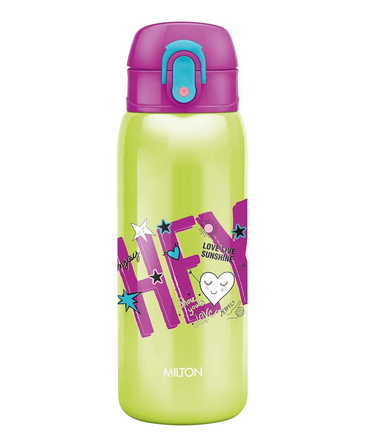 This Thermosteel Kids Bottle is great for keeping your kid's drinks hot or cold all day long. It's made with vacuum-insulated stainless steel, so it keeps the temp inside just right, but it is still small. The flip-top lid is easy for kids to pop open. Since it is made with rust-resistant and odor-free materials, this bottle is tough and clean. Plus, it's light and has a belt to loop around their hands. A 390 ml capacity and cool animal designs, your child is gonna love it for school, trips, or playtime.