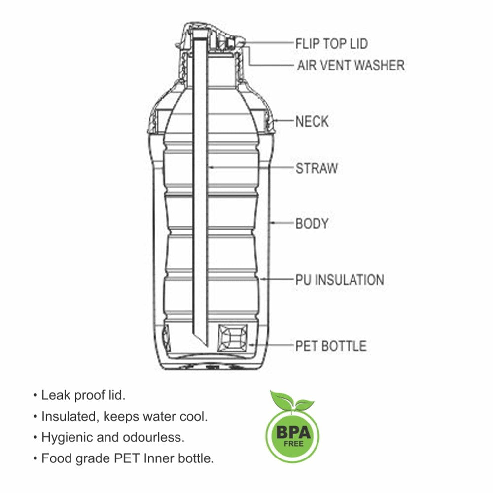 Milton's Kool Active bottle is designed with attractive patterns and vivid colors for kids. It keeps drinks cold for hours and is made of safe materials. The bottle is leak-proof and easy to carry, with a flip-top lid and straw for easy access to drinks. The stylish sleek shape and belt allow for a firm grip and easy carrying. The bottle is made of food-grade plastic and is BPA-free, making it safe for regular use.
