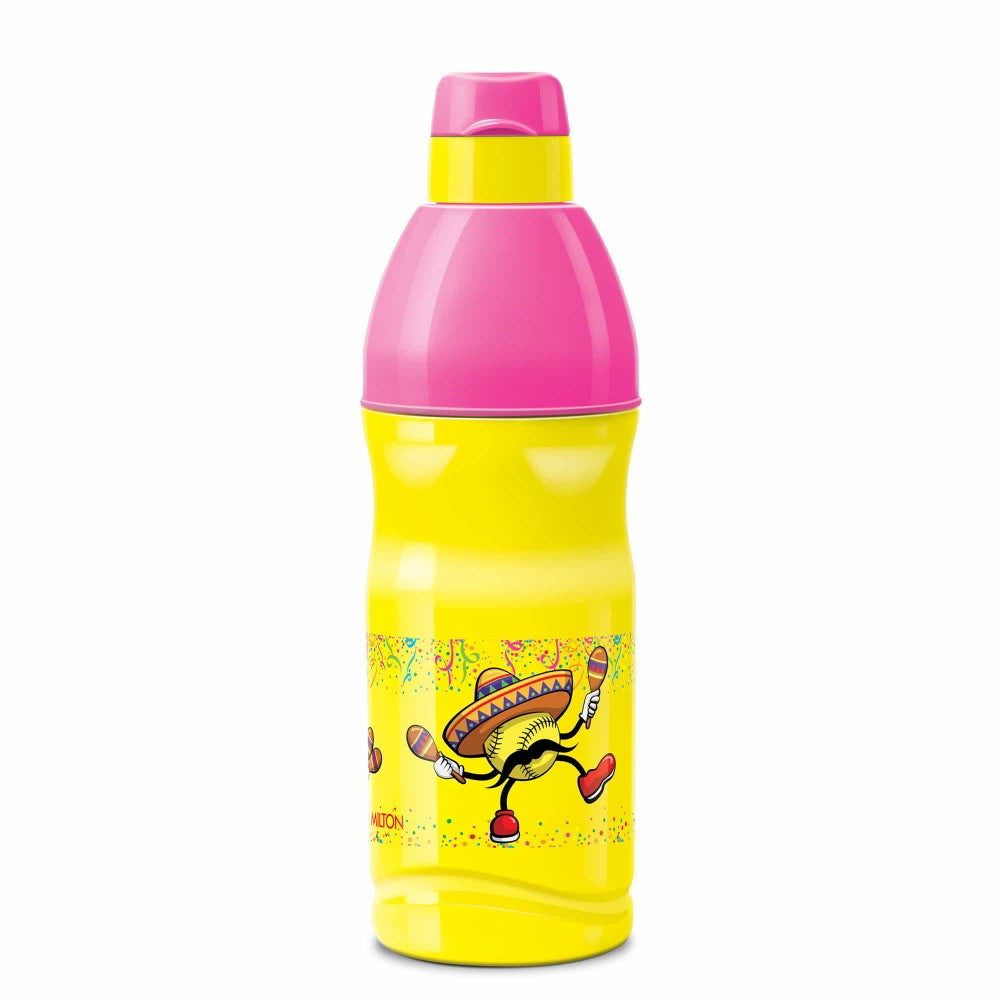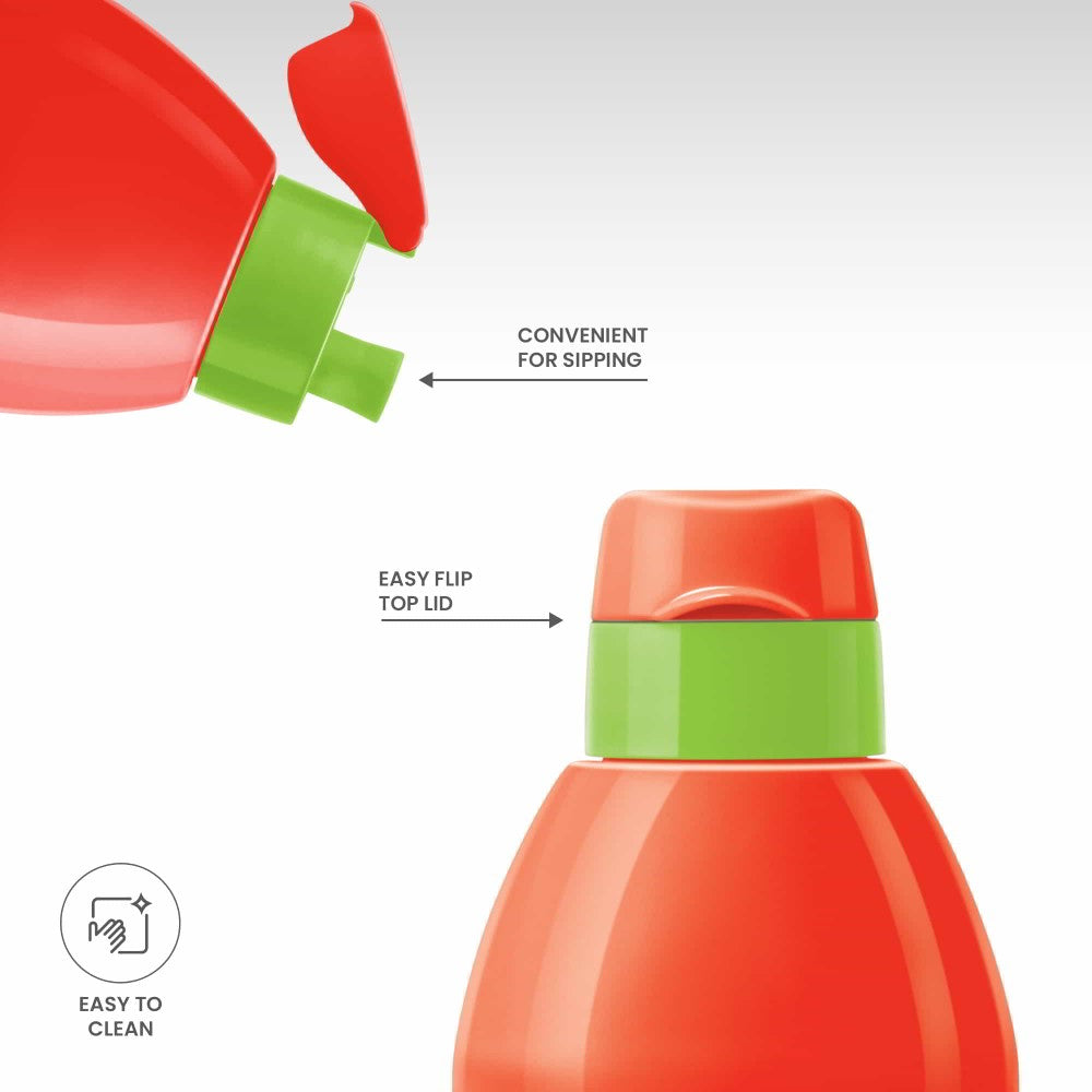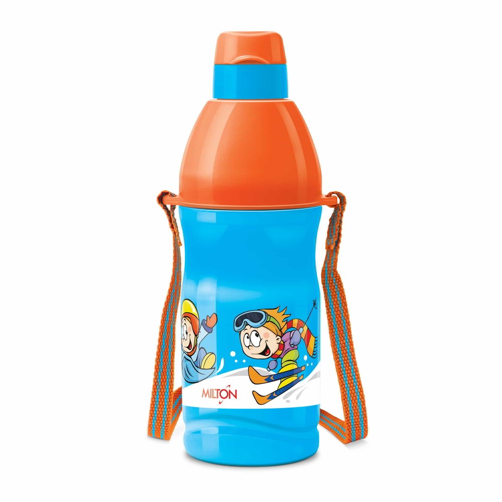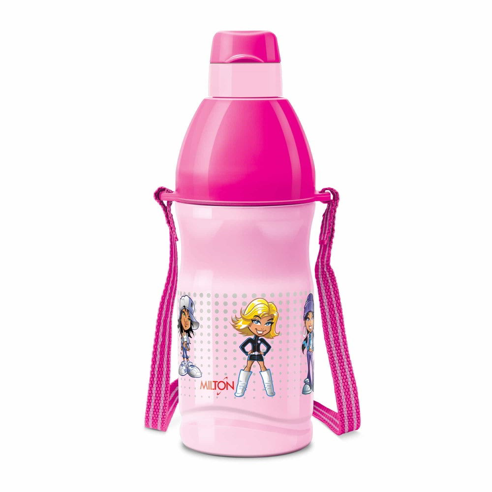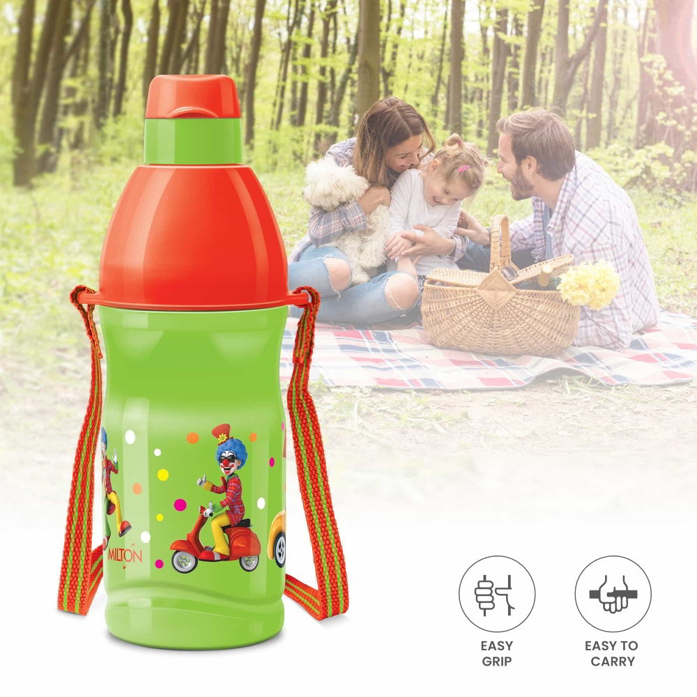 Milton's Kool Buddy bottle is designed with attractive patterns and vivid colors for kids. It keeps drinks cold for hours and is made of safe materials. The bottle is leak-proof and easy to carry, with a flip-top lid and straw for easy access to drinks. The stylish sleek shape allows for easy handling, and the belt provides a firm grip and easy carrying. Customer care number is provided for any queries or concerns.