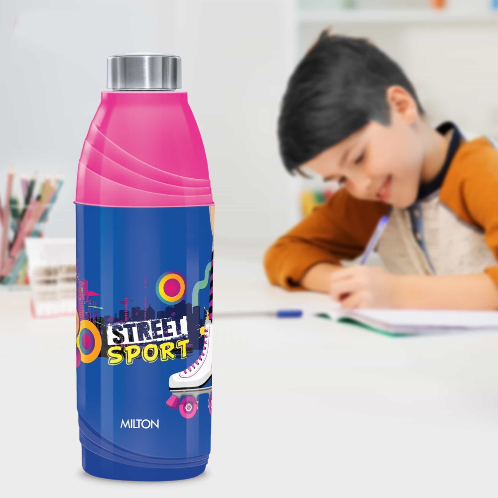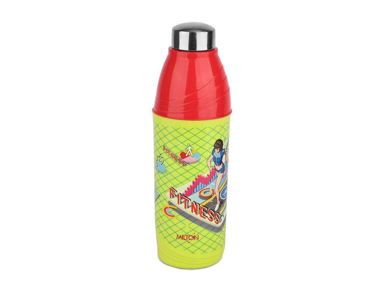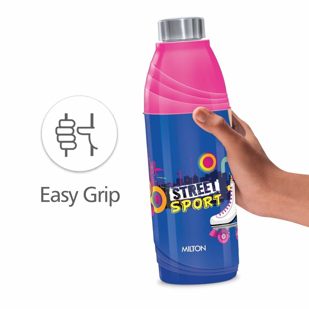The Milton New Kool N Sporty Bottle is an insulated bottle that keeps drinks cold for hours. It is leak-proof and easy to carry, making it suitable for storing beverages. The bottle comes with a 1-year warranty and customer care support. It is made of food-grade plastic material, ensuring it can withstand daily use. The convenient size fits in the side pocket of bags, making it perfect for school, picnics, and car bottle holders.