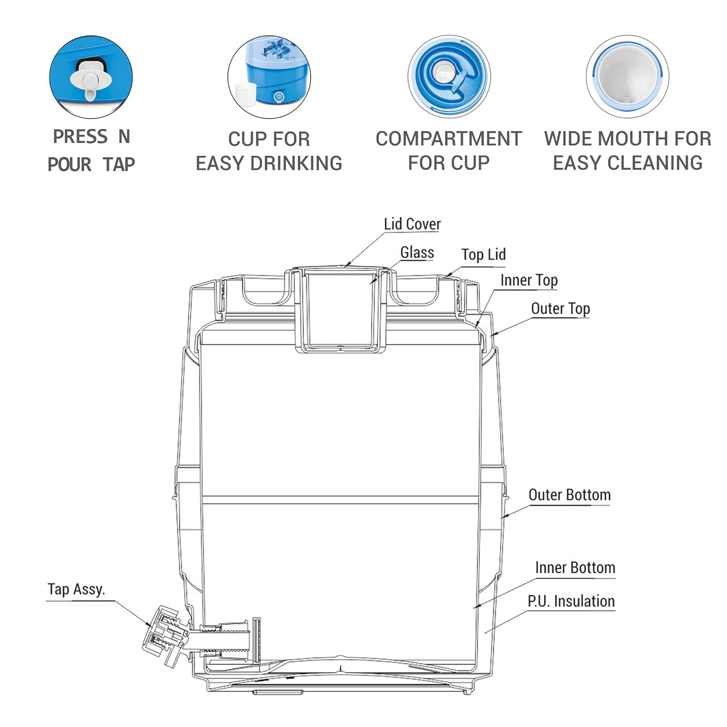 - Easy pouring with the tap feature