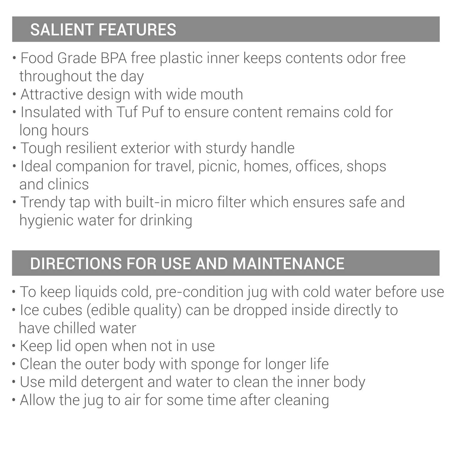Insulated jug to keep drinks cold for extended ...