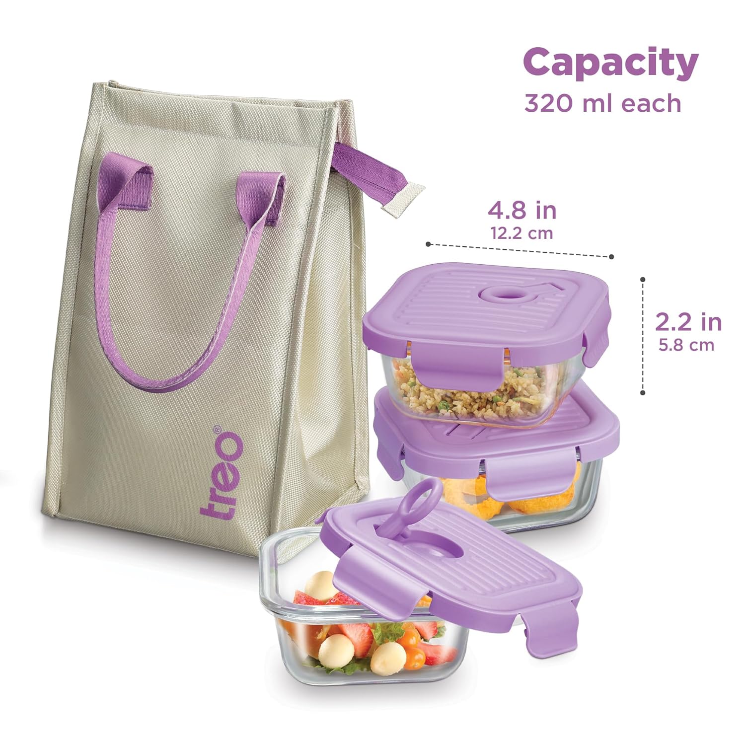 Include Components - 3 x Square Tiffin Containers (320 ml each), 1 x Bag