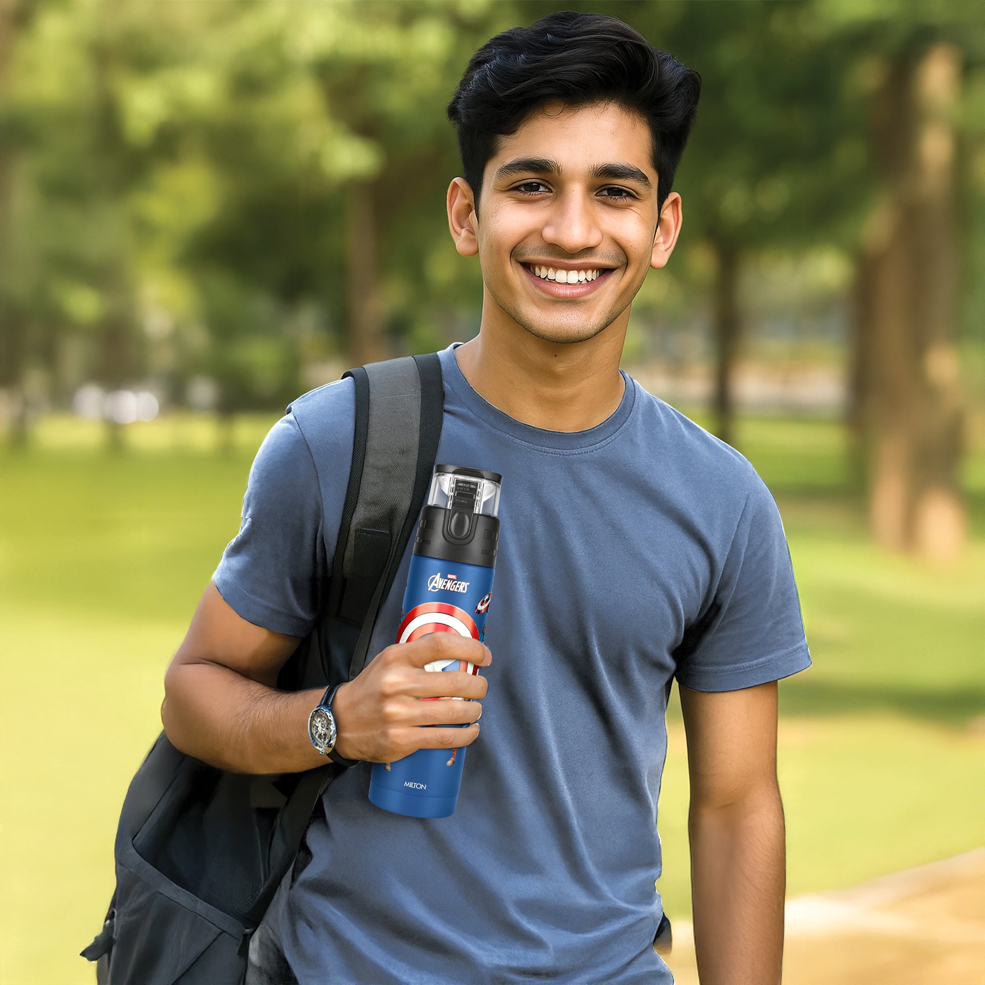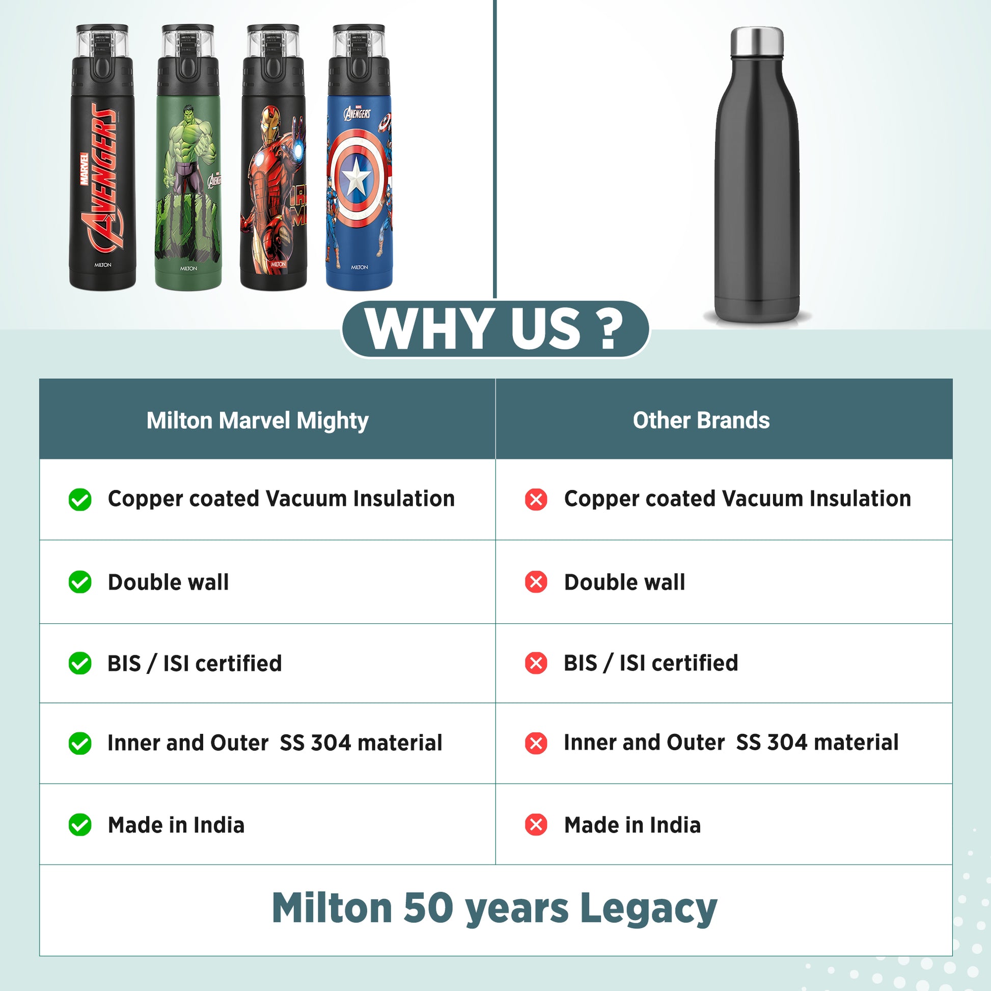 Adding to its appeal the bottle showcases attractive UV prints of Marvel’s iconic characters – including Iron Man, Hulk, Captain America, and Avengers themes – making it a perfect blend of style and functionality. It comes with 1 year manufacturing warranty .