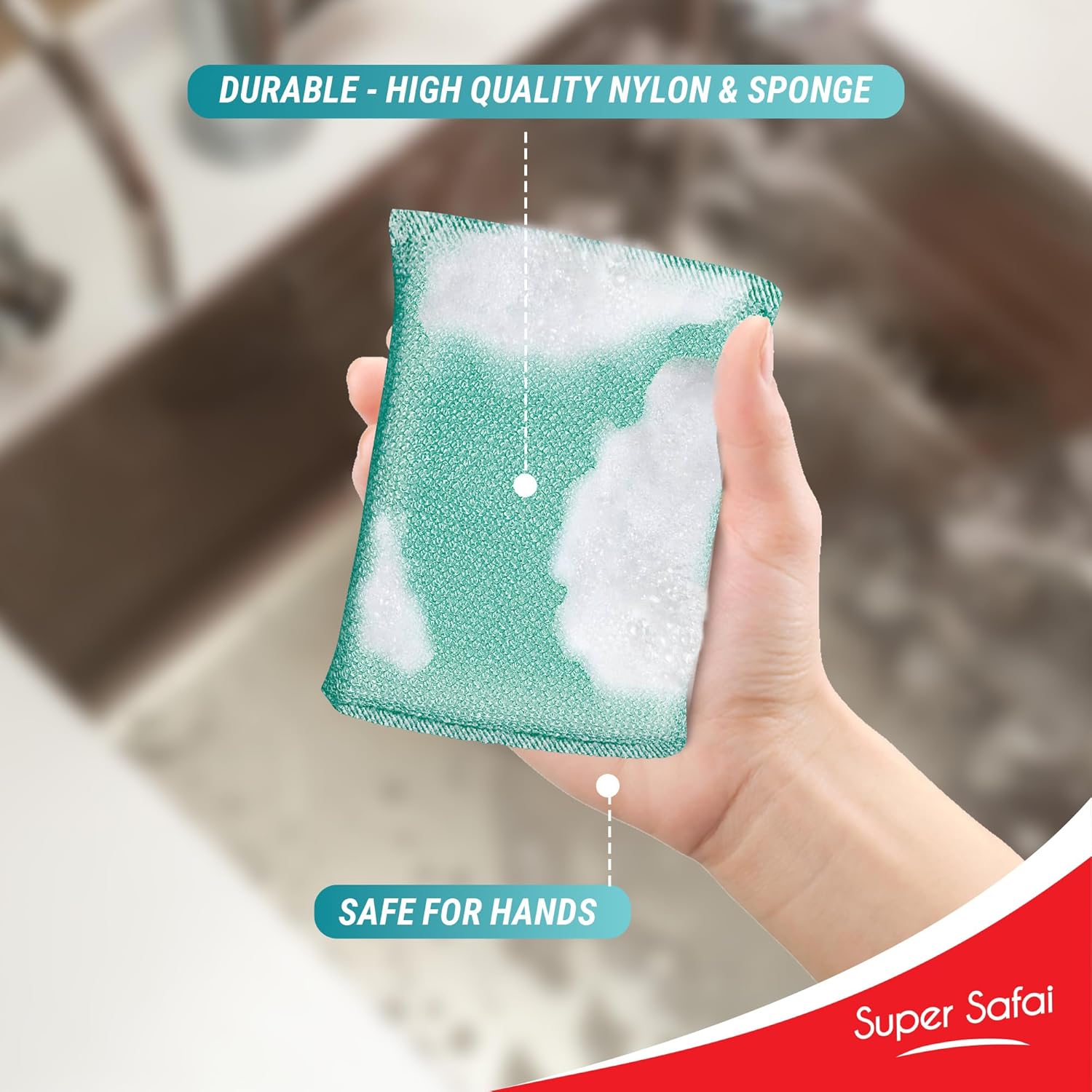 - Utensil Scrubber made up of superior fibre, stain cutter technology uniquely shaped, evenly distributed alox particles.