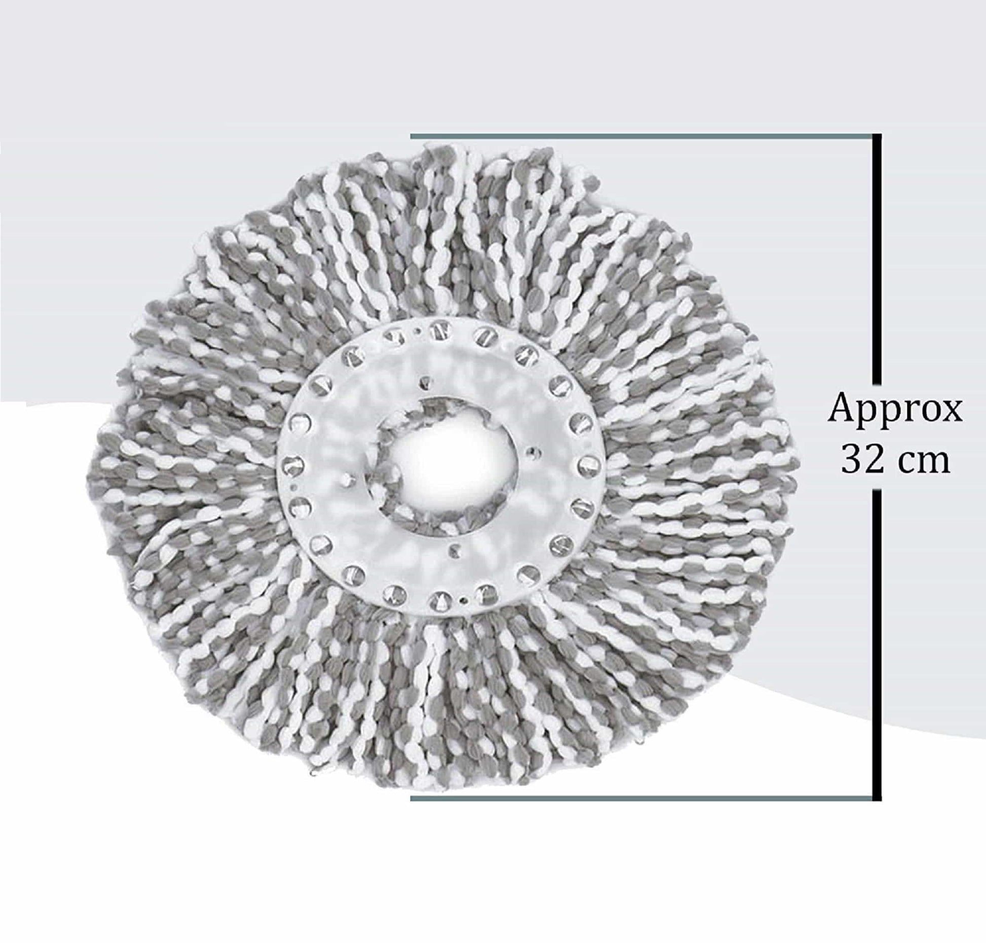 - The mop head is compatible with various spin mops and is reusable and machine washable.