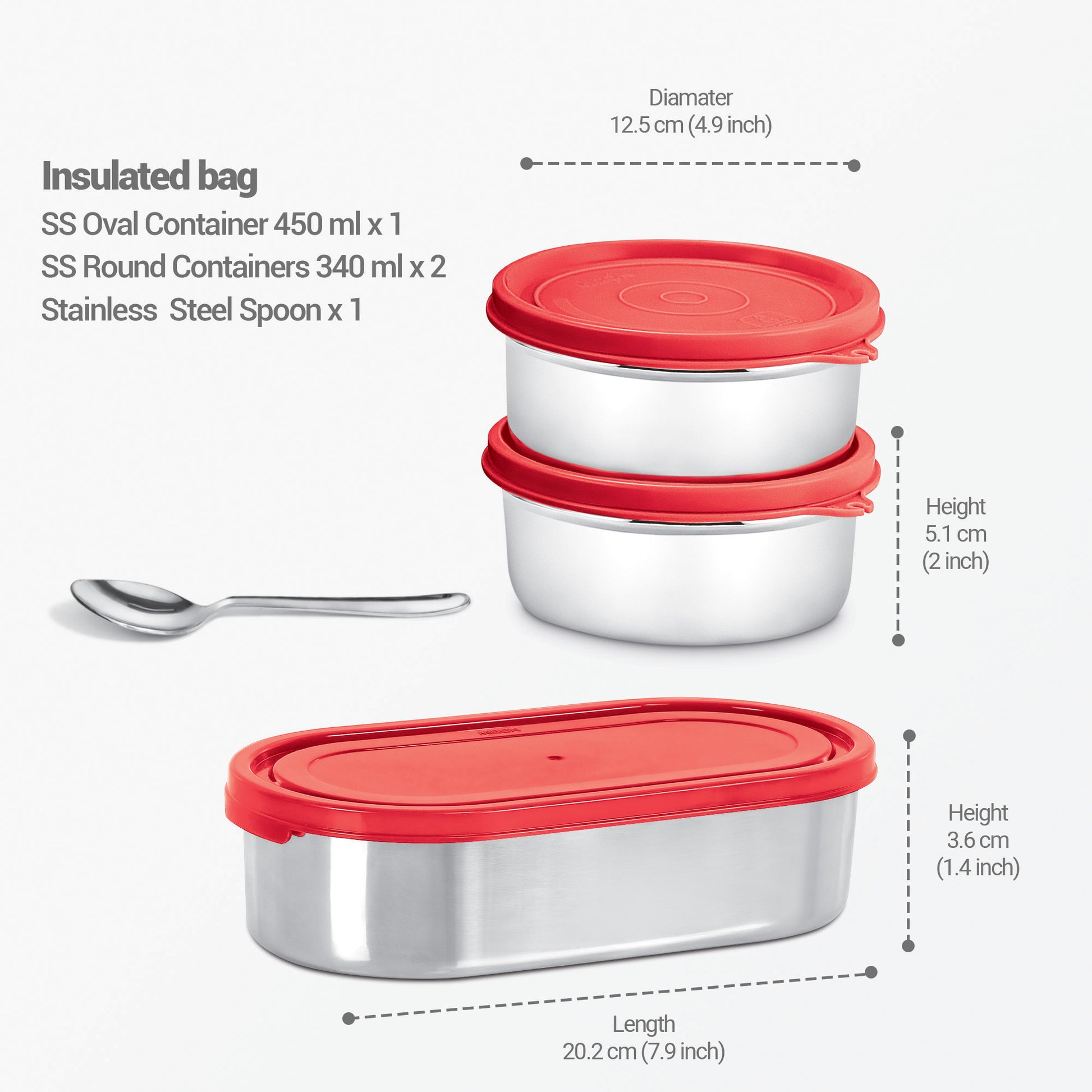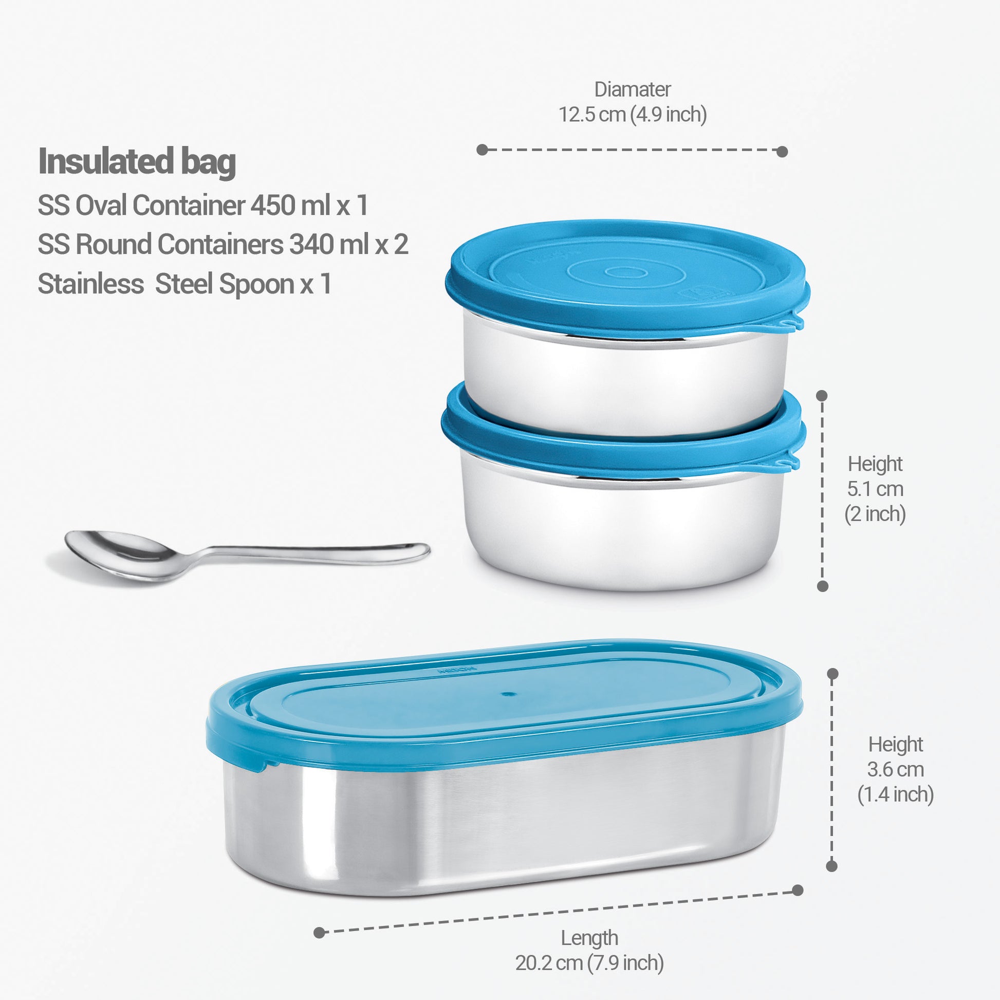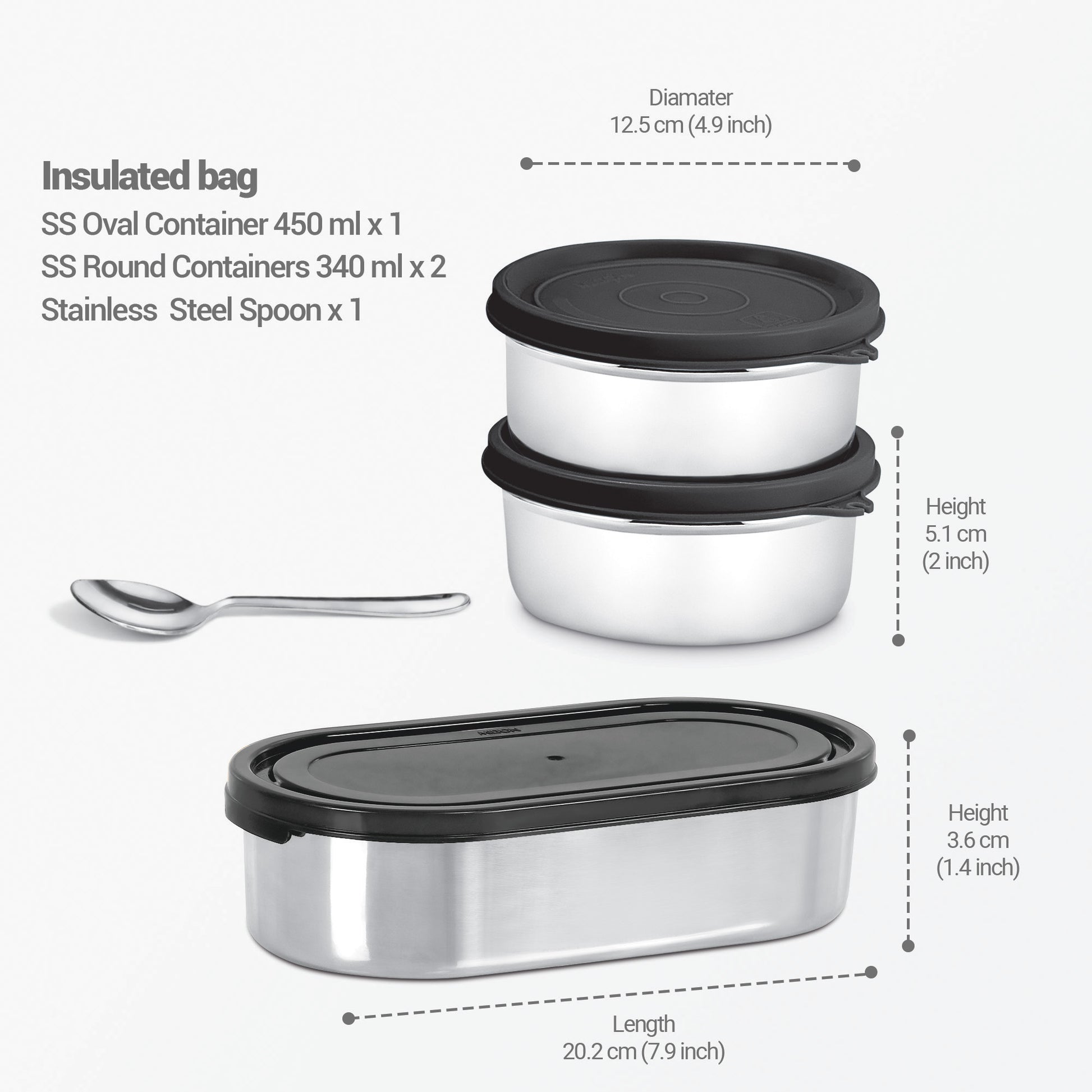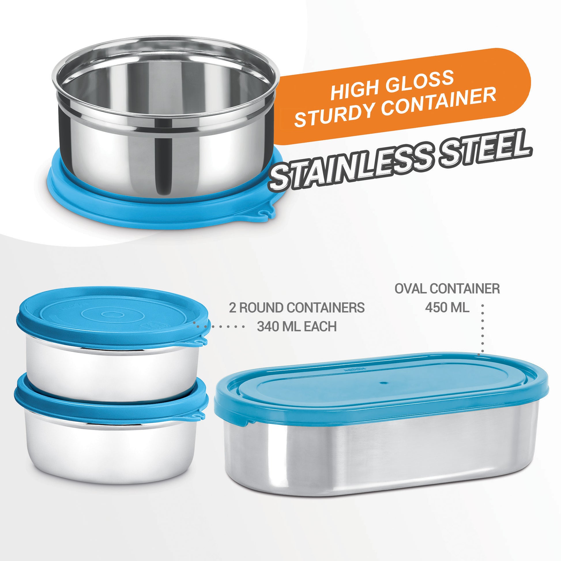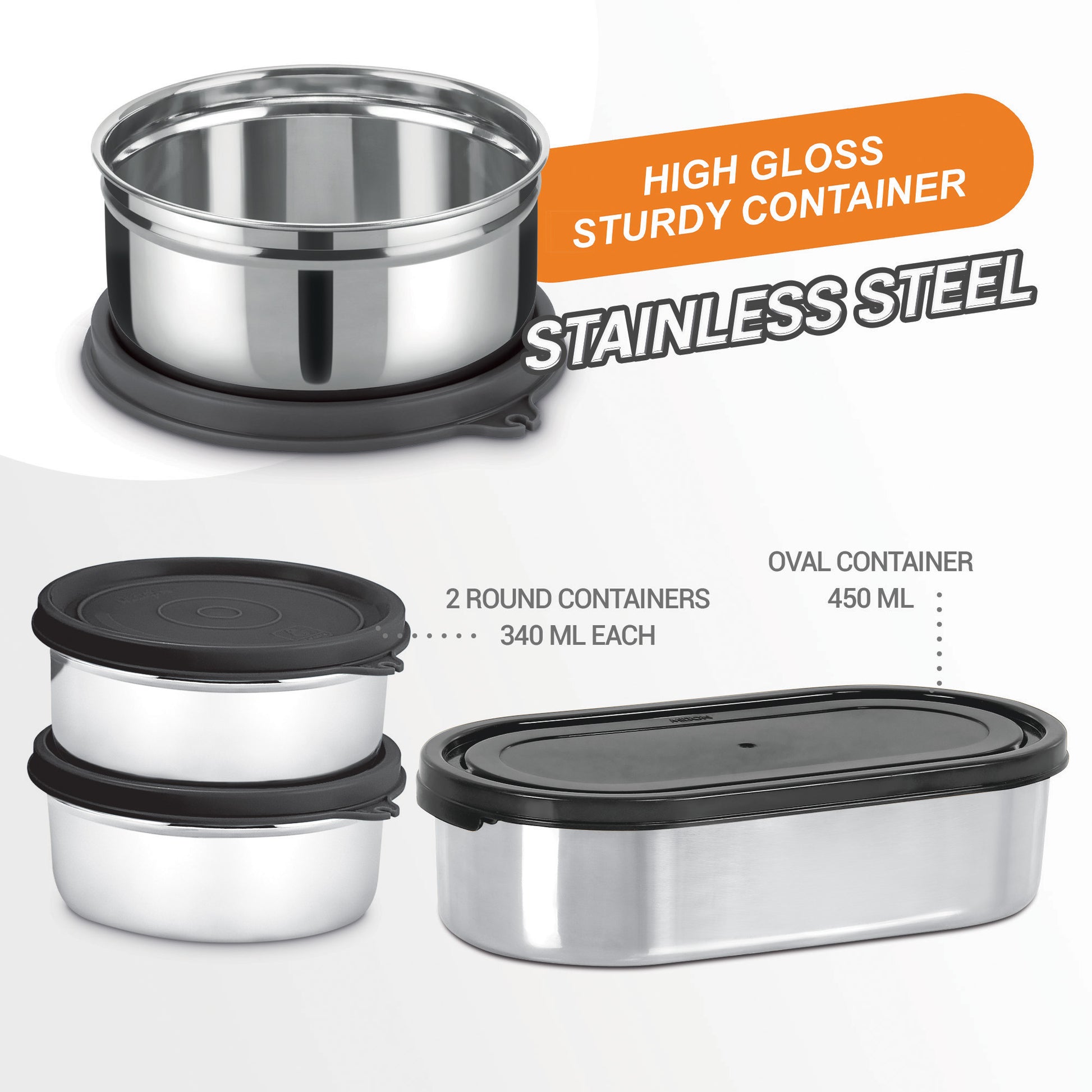2 x 340 ( Stainless Steel Containers ) + Oval 450