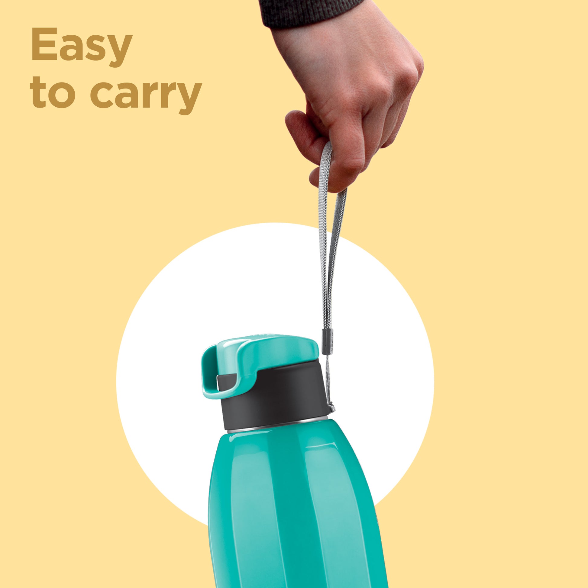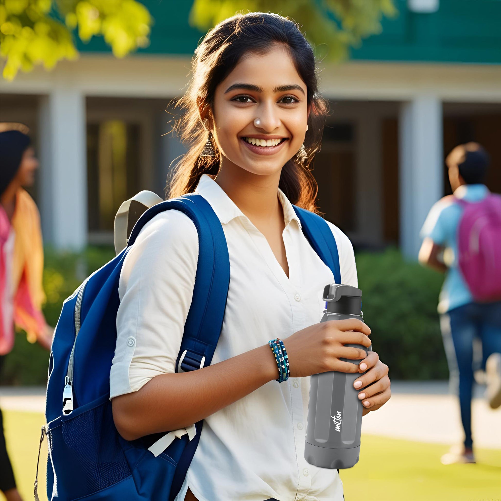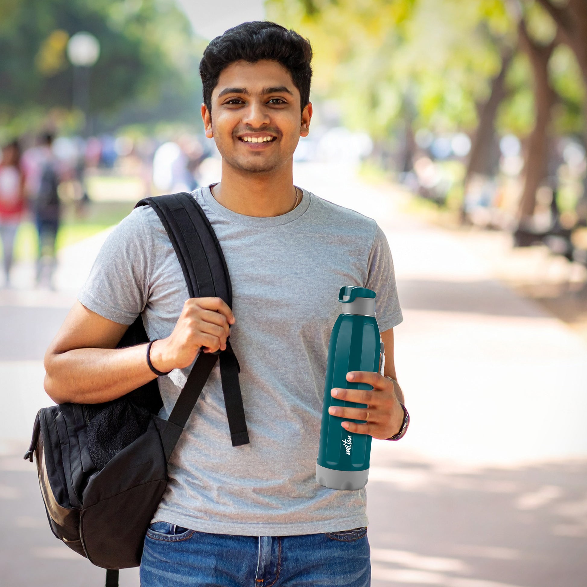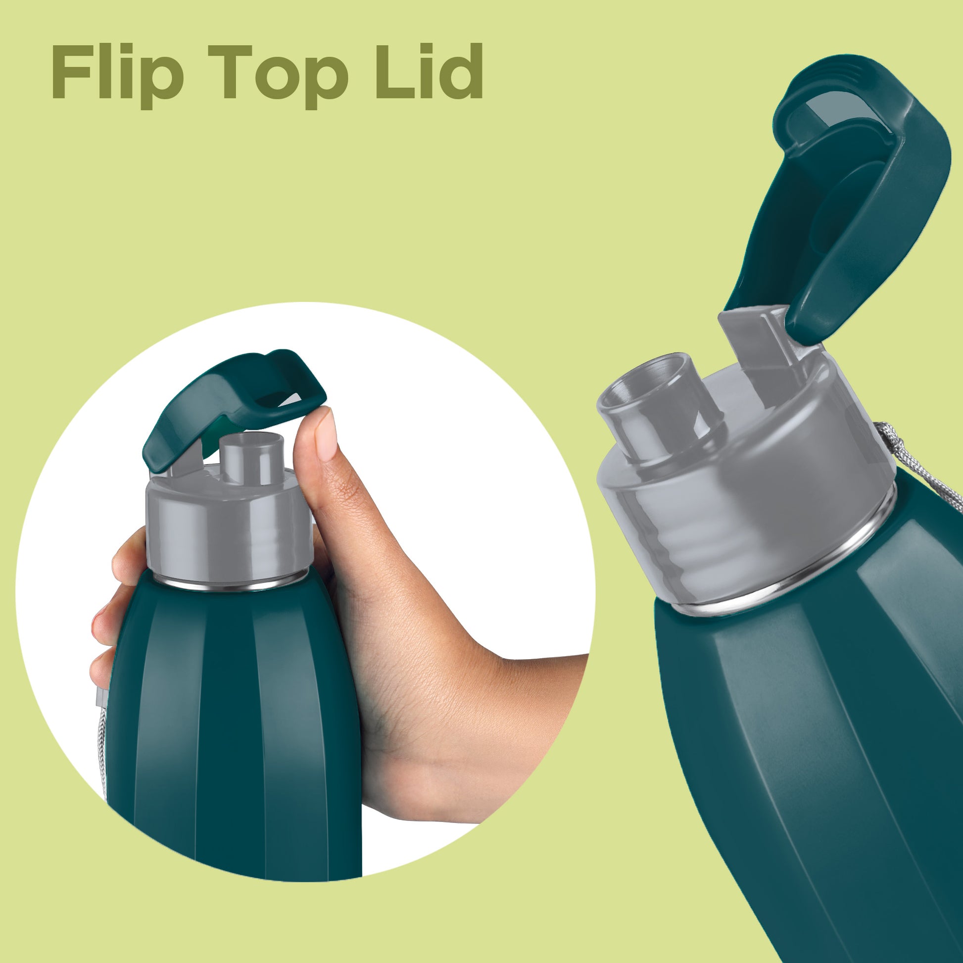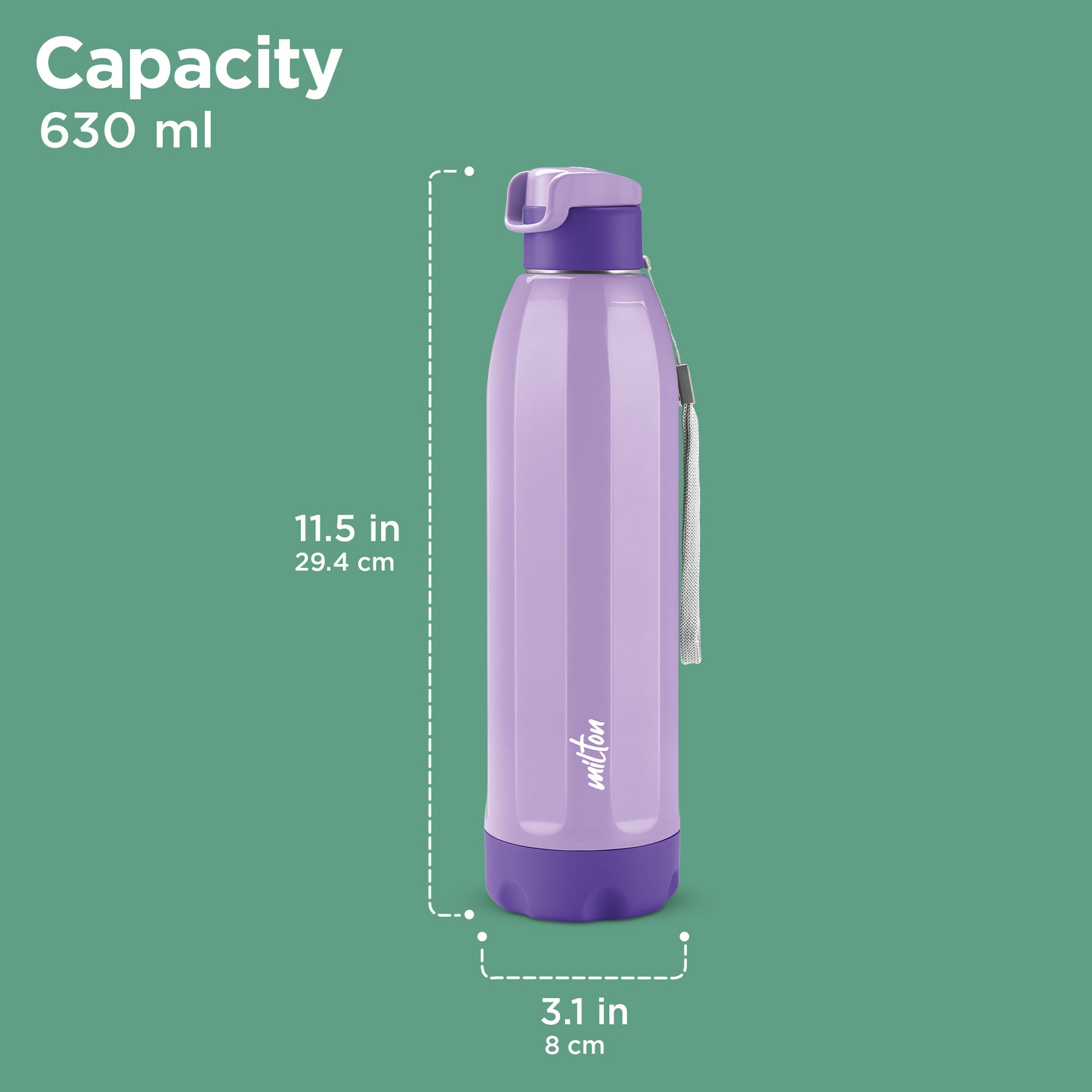 The bottle is leak-proof and suitable for various activities. It is recommended for carrying clean water while traveling and comes with a 1-year warranty. The insulated stainless steel interior regulates the temperature and keeps drinks hot or cold for hours. The bottle can store hot water up to 40°C temperature. This bottle comes with an extra lid.