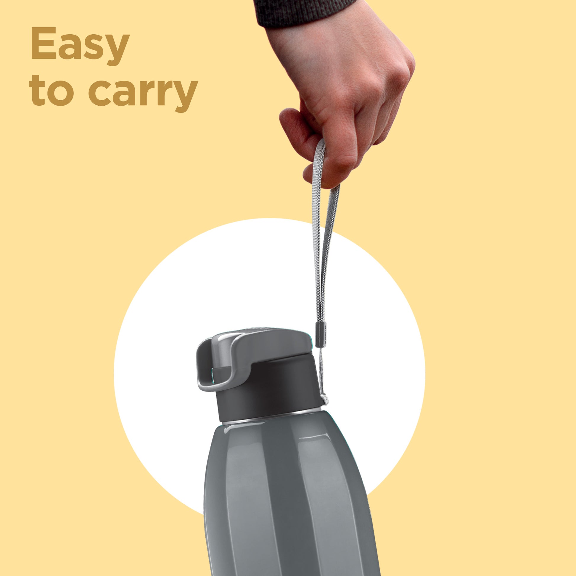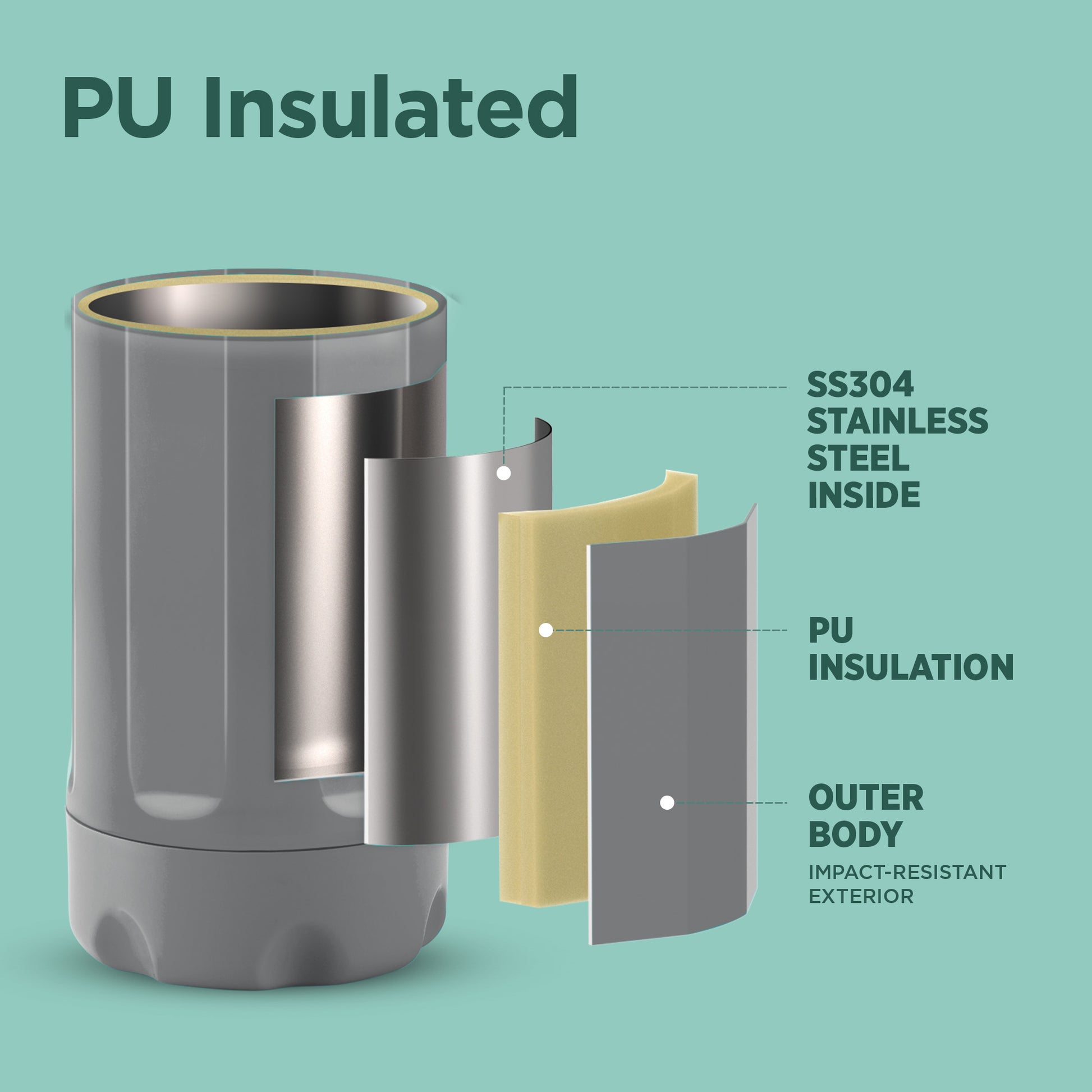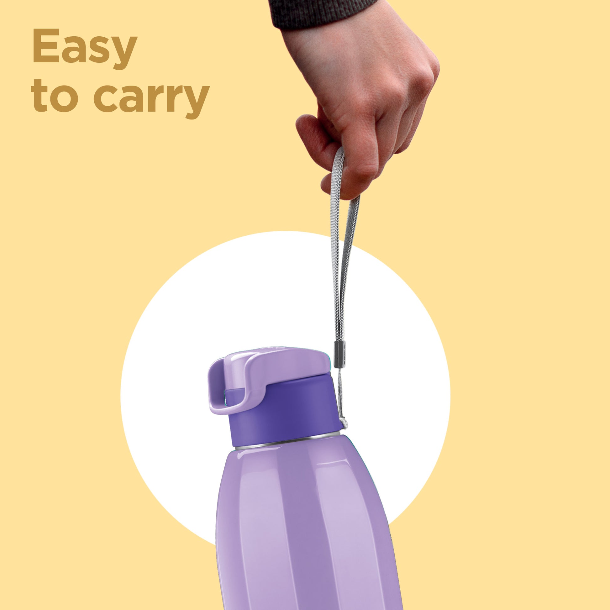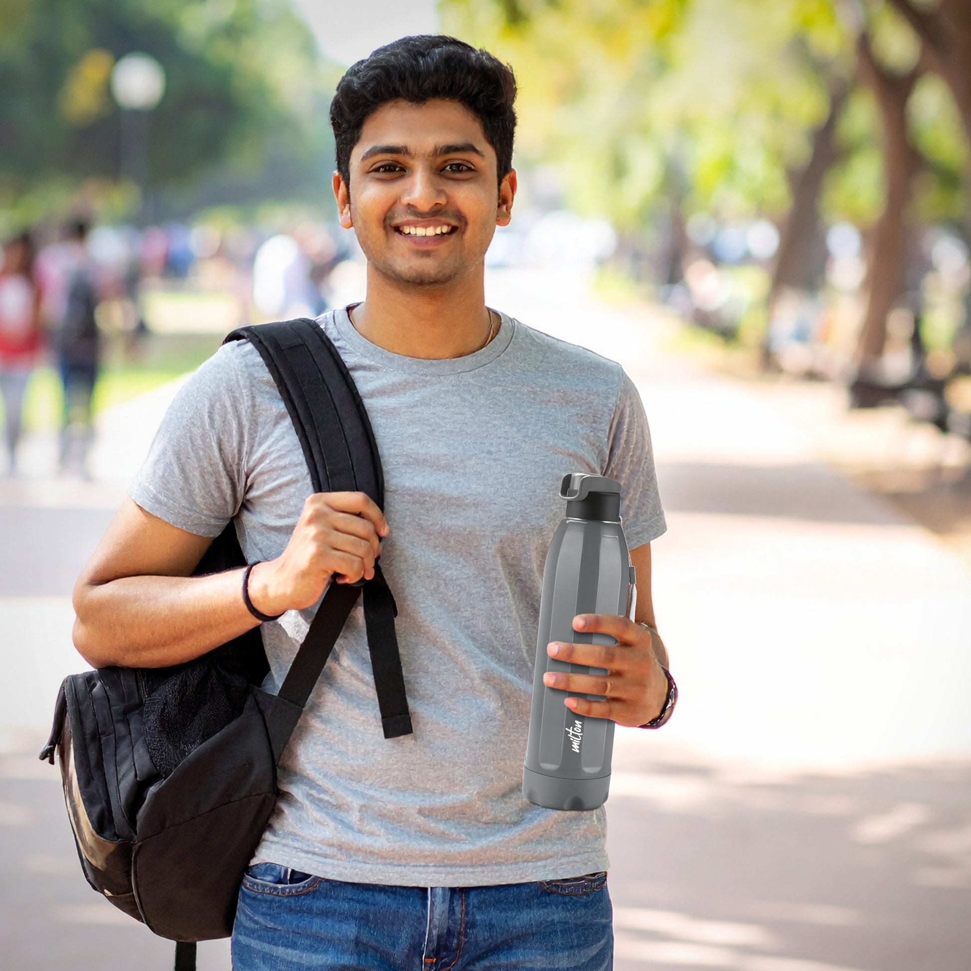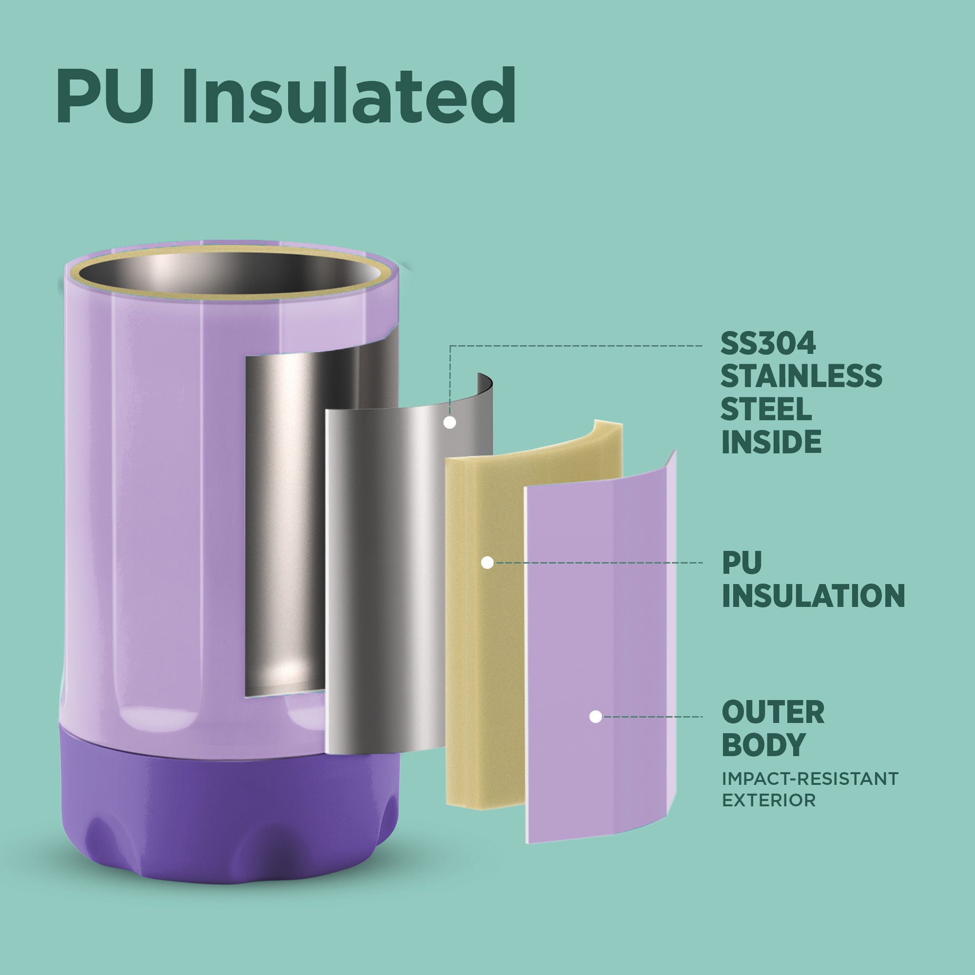 The bottle is leak-proof and suitable for various activities. It is recommended for carrying clean water while traveling and comes with a 1-year warranty. The insulated stainless steel interior regulates the temperature and keeps drinks hot or cold for hours. The bottle can store hot water up to 40°C temperature. This bottle comes with an extra lid.