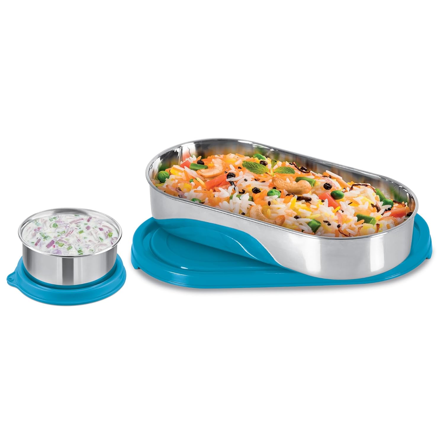 Milton Steel Refresh Tiffin 650 is the perfect for your on-the-go meals. This compact, oval-shaped tiffin is designed to fit comfortably in your bag or backpack. With its inner container, you can easily pack a variety of dishes without worrying about them mixing. Enjoy fresh, delicious food wherever you go.