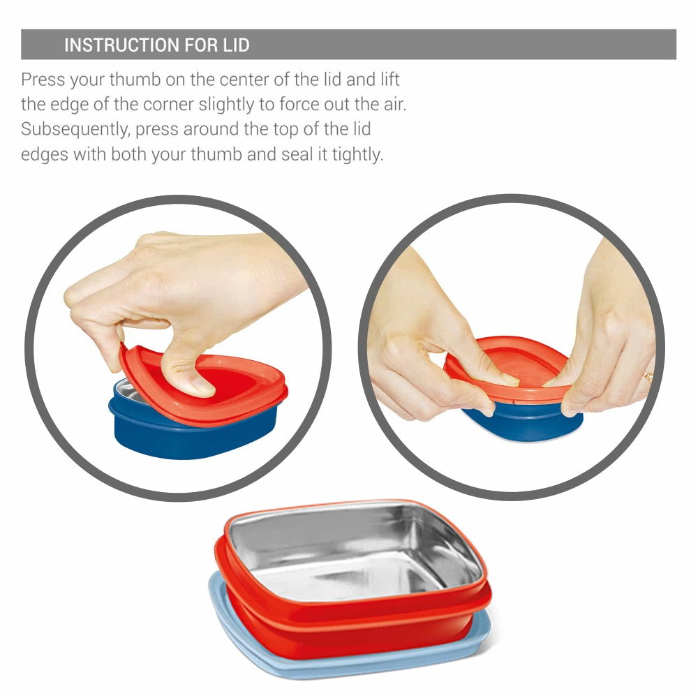 Color: Red; Material: Inner Steel, Outer Plastic; Package Content: 1 - Piece Steely Deluxe Mini Tiffin (400 ml); For any queries kindly reach customer care number as mentioned on the product packaging along with the proof of purchase.