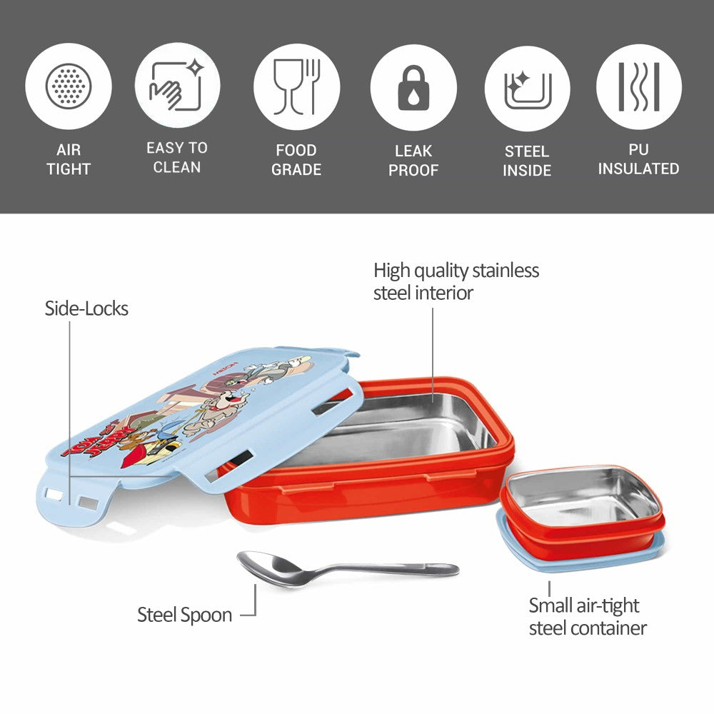 Color: Red; Material: Inner Steel, Outer Plastic; Package Content: 1 - Piece Steely Deluxe Mini Tiffin (400 ml); For any queries kindly reach customer care number as mentioned on the product packaging along with the proof of purchase.