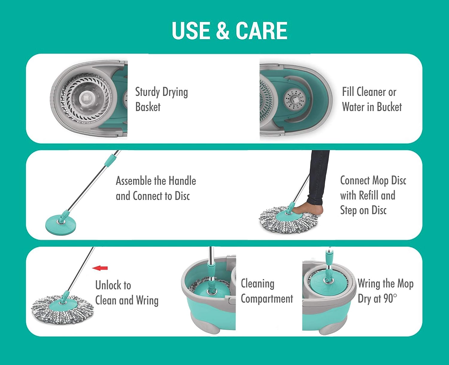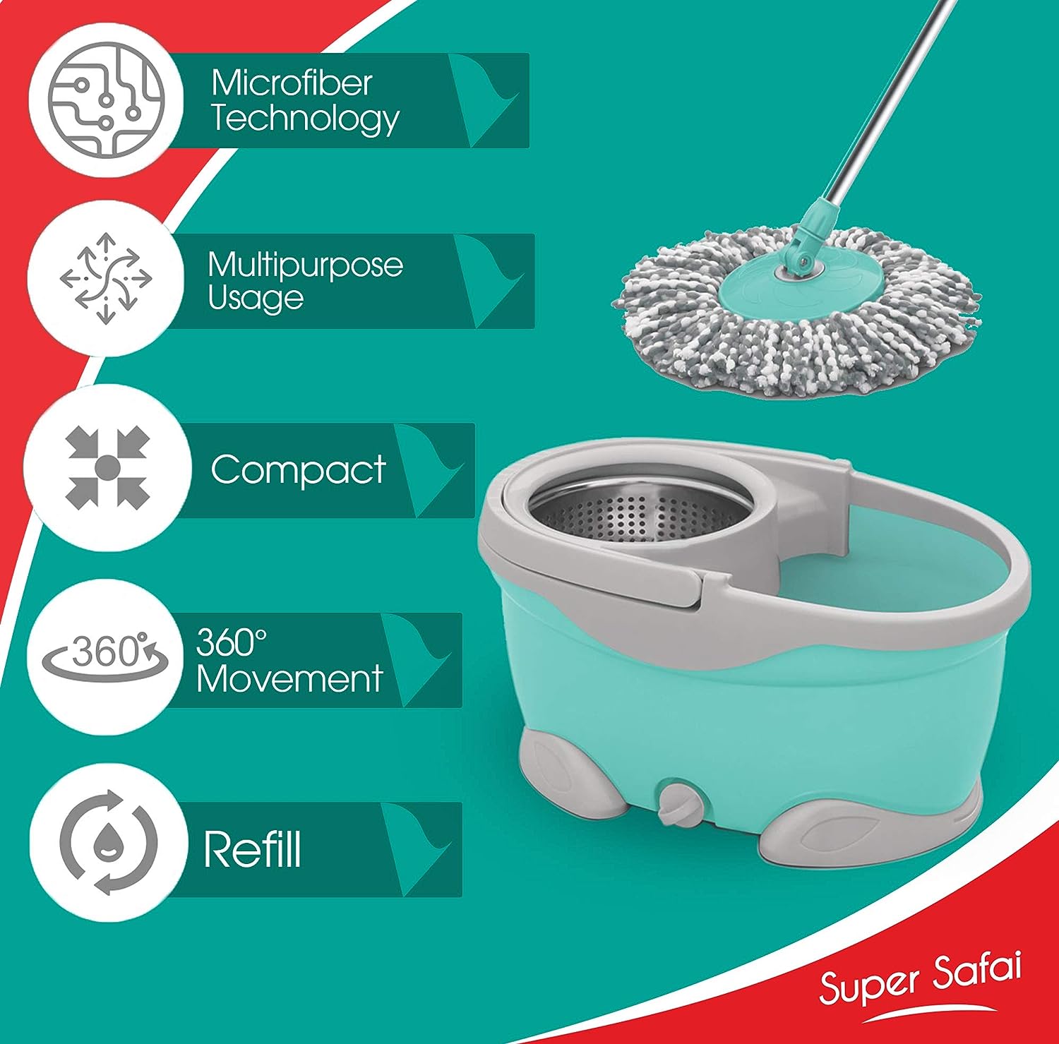 Colour: Aqua Green; Material: Plastic; Package Content: 1 - Piece Swift Spin Mop; Dimension in cm (L x W x H):