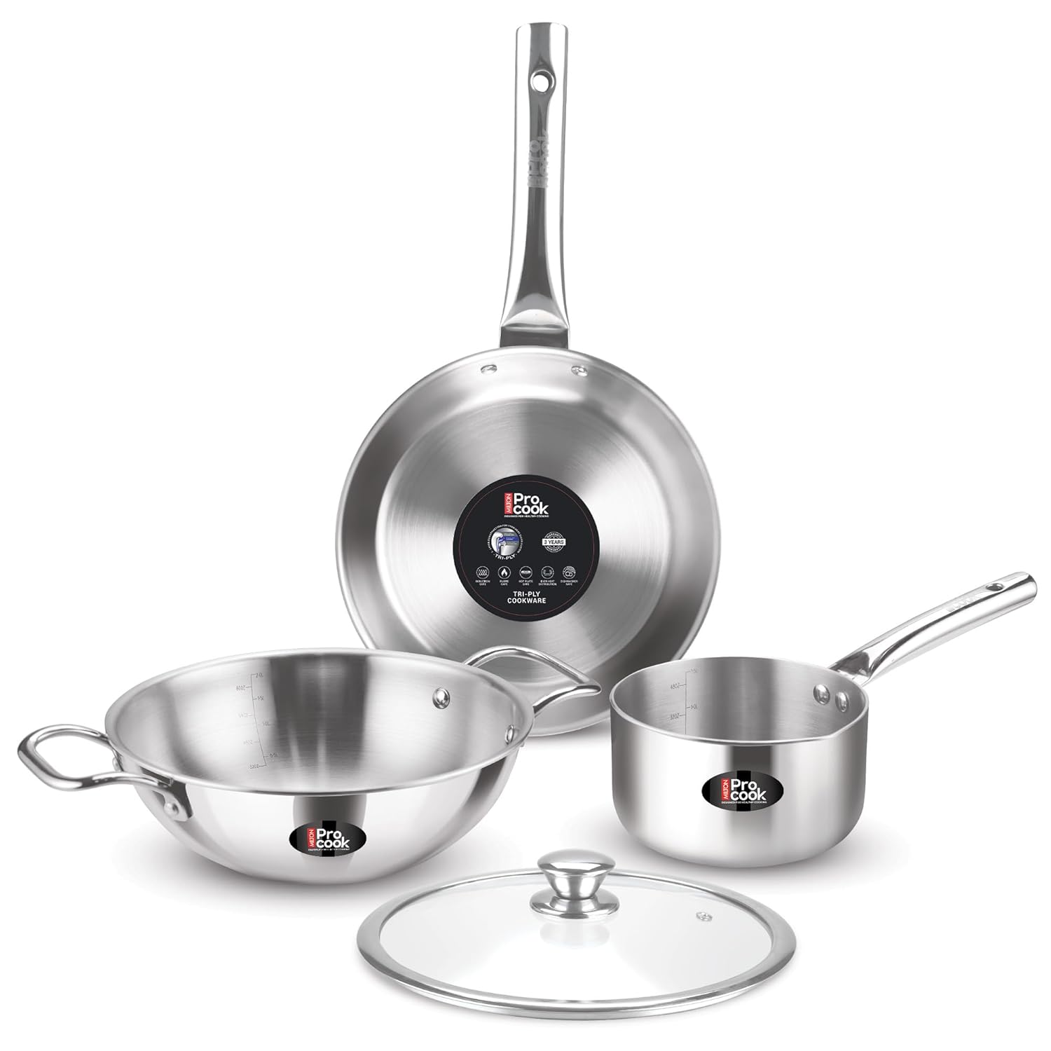 Triply Stainless Steel 4 Pc Induction Cookware Set (Procook By Milton)