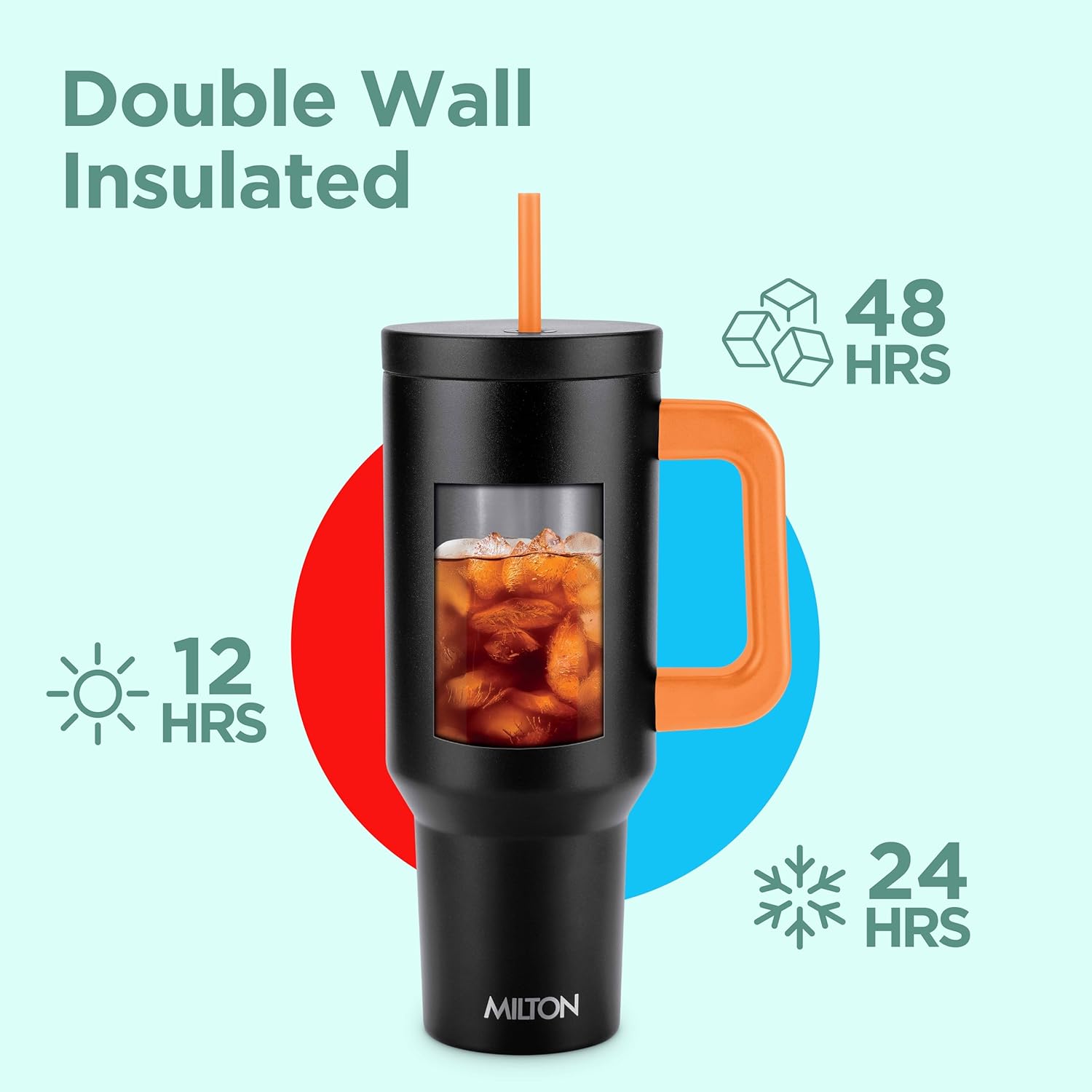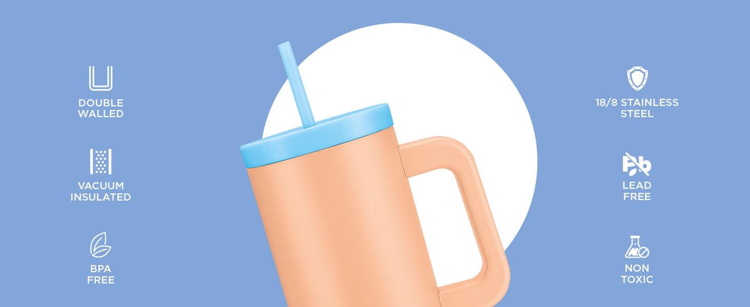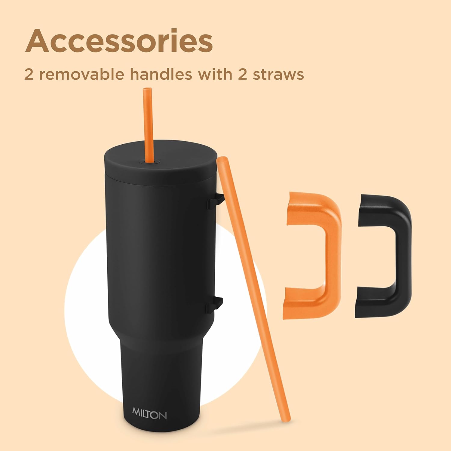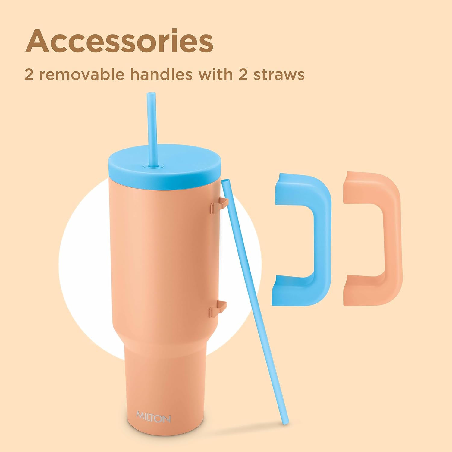 - Premium Material and Construction: Our 1200 ml tumbler with removable handles and straws is crafted from high-quality 18/8 stainless steel. It features a double-walled, vacuum-insulated design with an internal copper coating and a durable powder-coated exterior, ensuring long-lasting use.