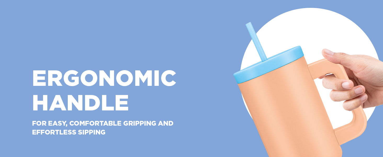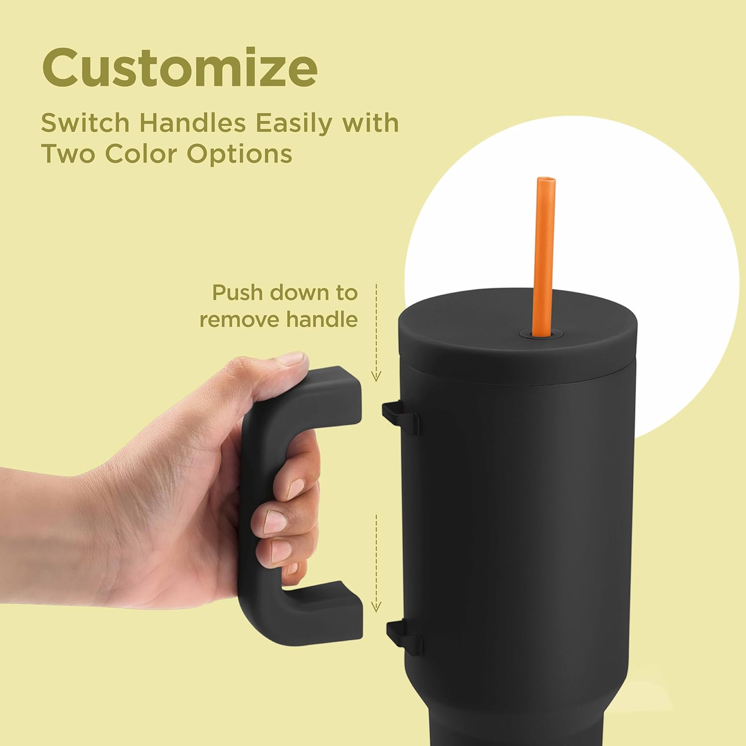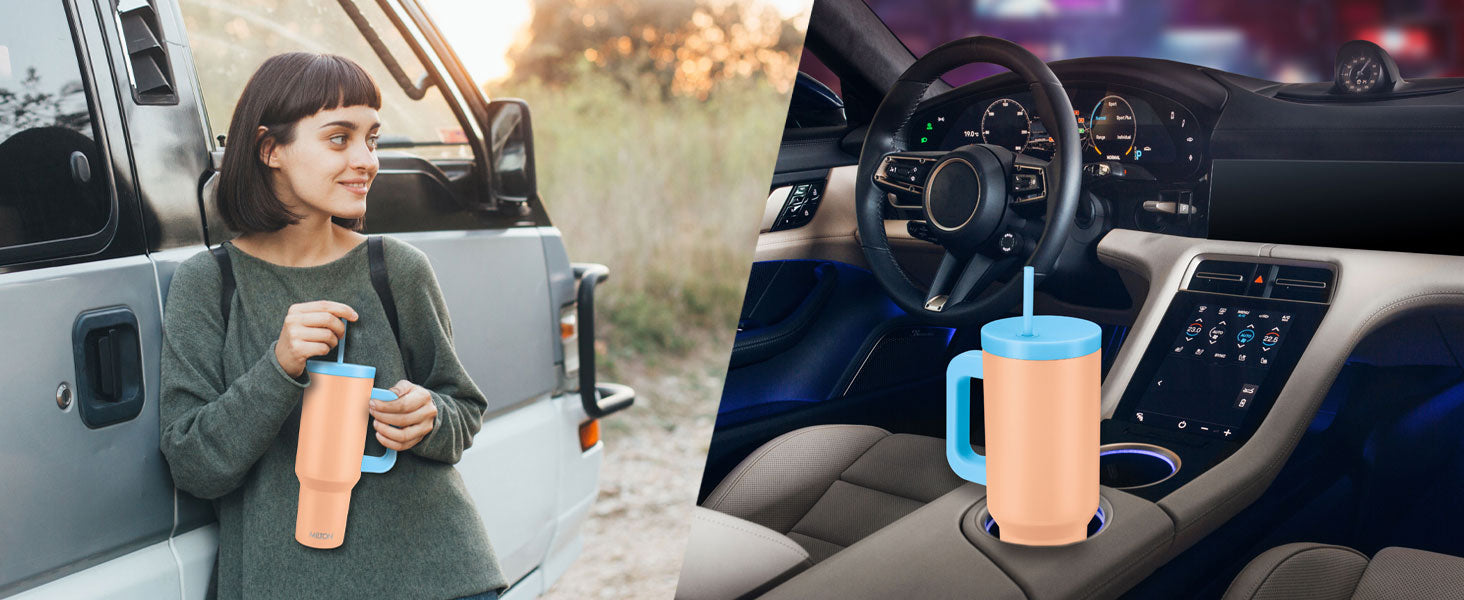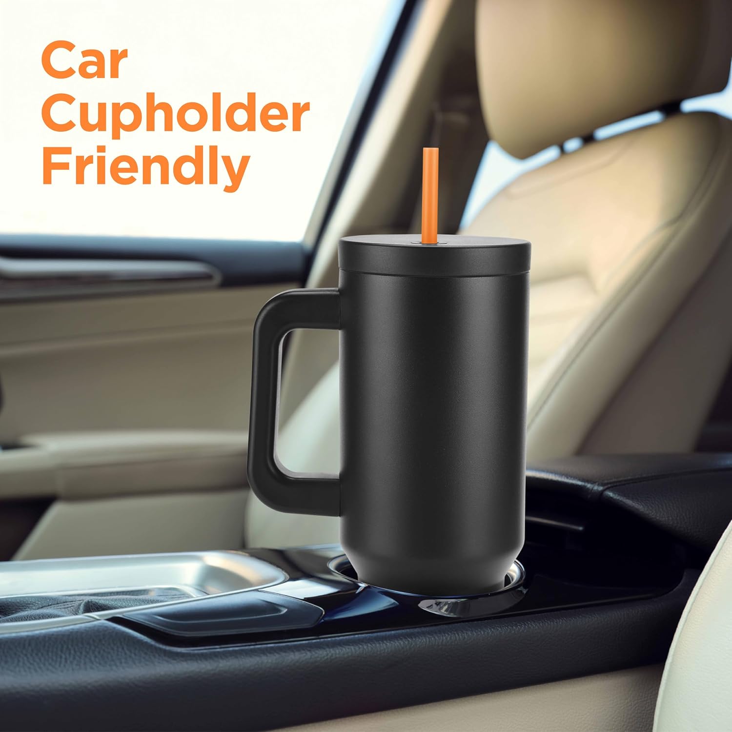- User-Friendly Design: The wide mouth of our thermal cup allows for easy ice insertion and thorough cleaning, while the removable handles provide a comfortable grip. Plus, it’s car cup holder friendly, making it an ideal companion for on-the-go hydration.