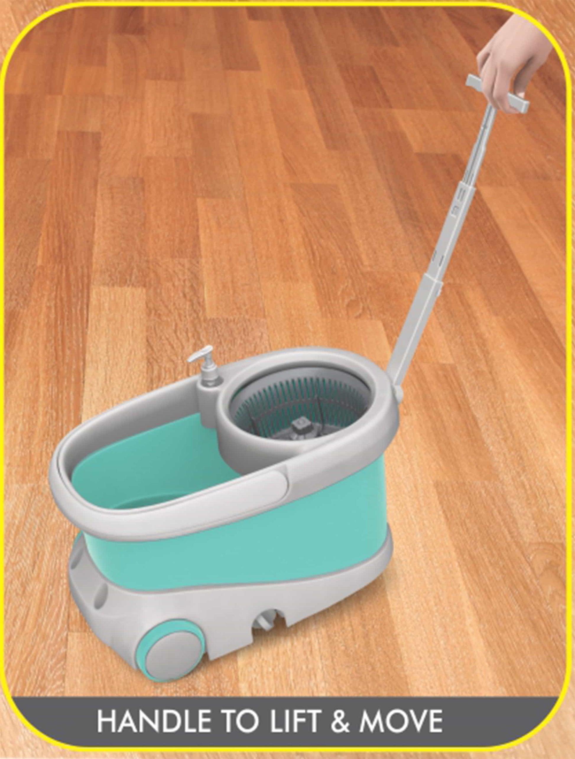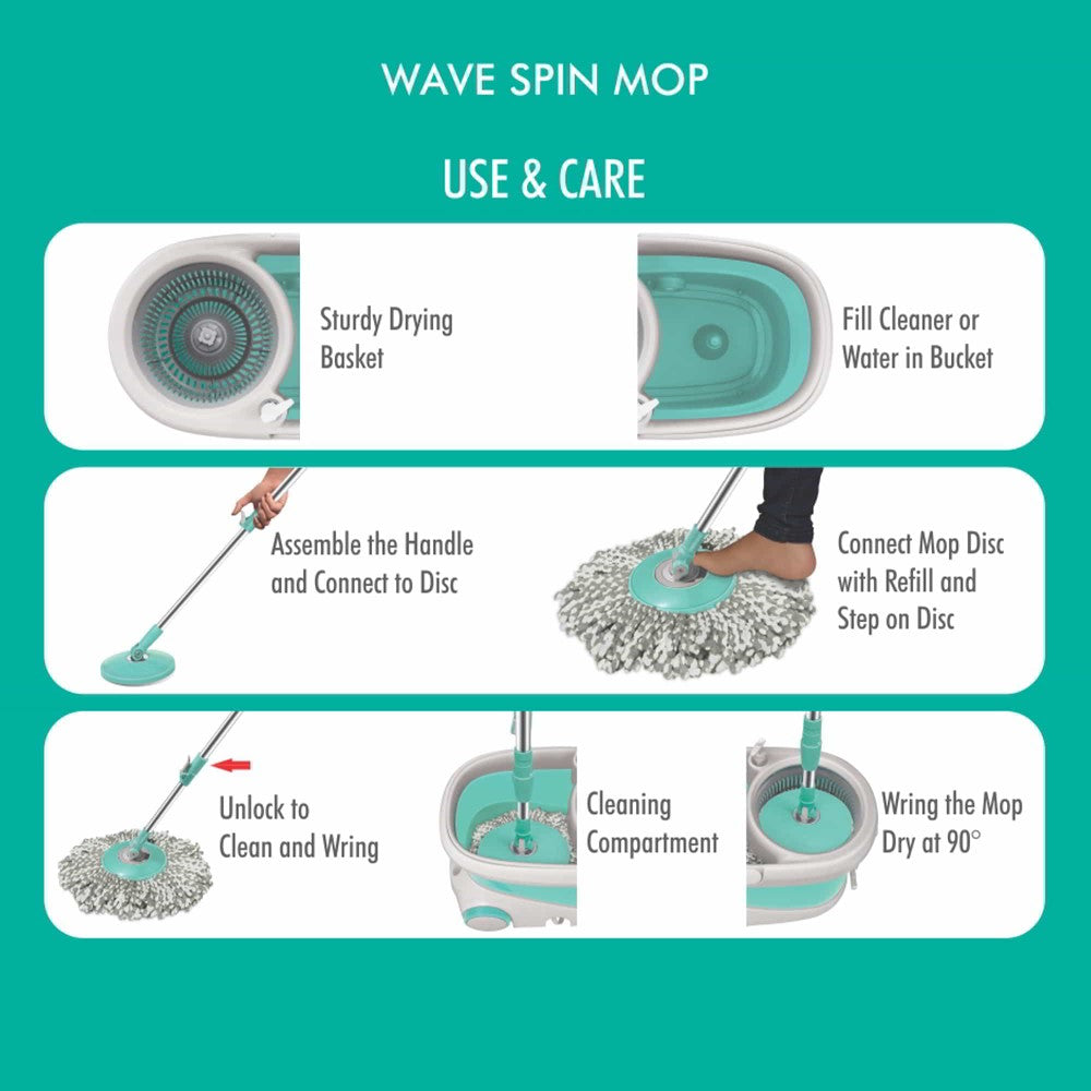 Colour: Aqua Green; Material: Plastic; Package Content: 1- Wave Spin Mop; Dimension in cm (L x W x H): 50.5 x 27.5 x 27